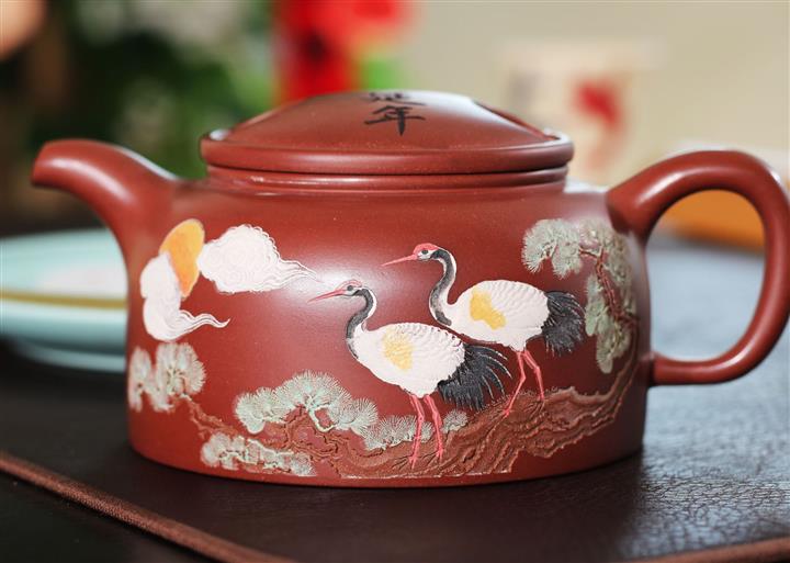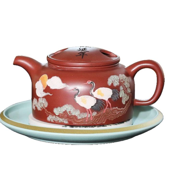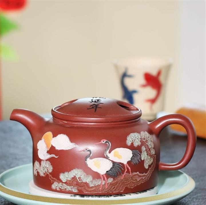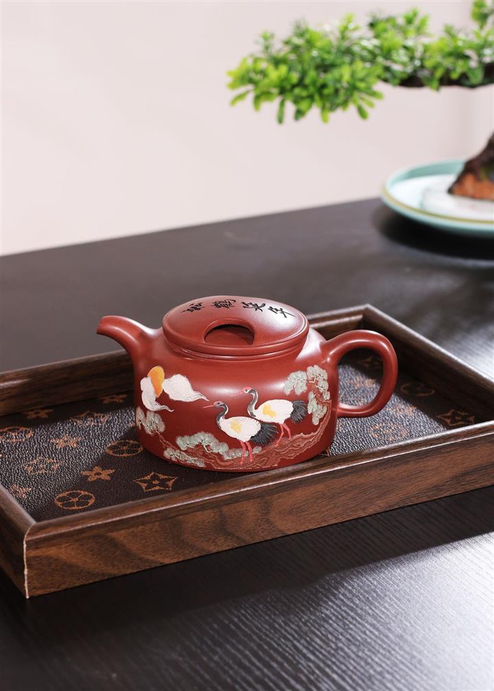 300cc原礦大紅袍松鶴延年牛蓋蓮子泡茶壺POT9399