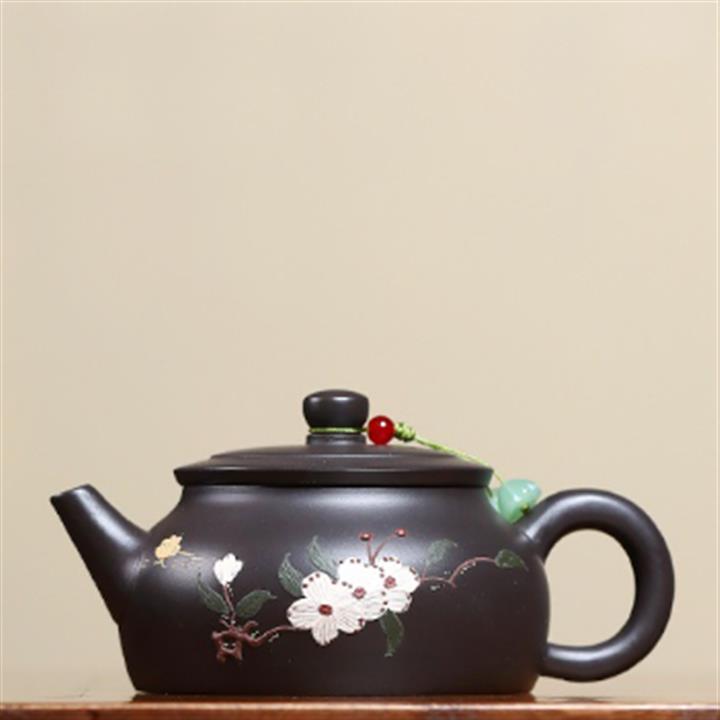 210cc原礦黑朱泥井欄蝶夢泡茶壺POT9409