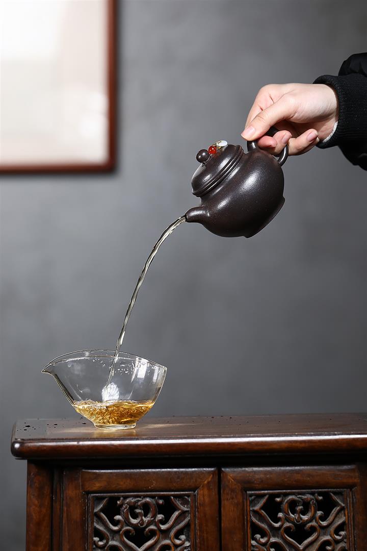 【泥料特點】砂土氣重,似淳實農民,日久使用,漸露鋒芒,養成變化,溫潤莊重。紫砂是壹種雙重氣孔結構的多孔性材質,氣孔微細,密度高。用紫砂壺沏茶,不失原味,且香不渙散,得茶之真香真味。紫砂使用越久,壺身色澤越發光亮照人,氣韻溫雅。紫砂壺長久使用器身會因撫摸擦拭,變得越發溫潤光澤。