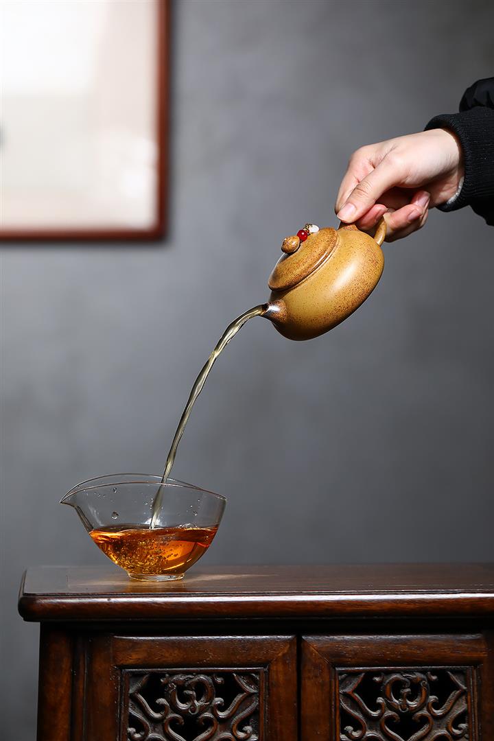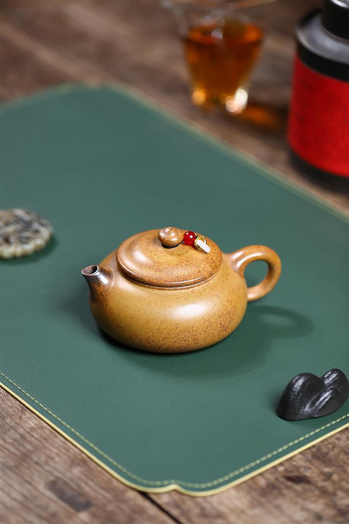 【泥料特點】砂土氣重,似淳實農民,日久使用,漸露鋒芒,養成變化,溫潤莊重。紫砂是壹種雙重氣孔結構的多孔性材質,氣孔微細,密度高。用紫砂壺沏茶,不失原味,且香不渙散,得茶之真香真味。紫砂使用越久,壺身色澤越發光亮照人,氣韻溫雅。紫砂壺長久使用器身會因撫摸擦拭,變得越發溫潤光澤。