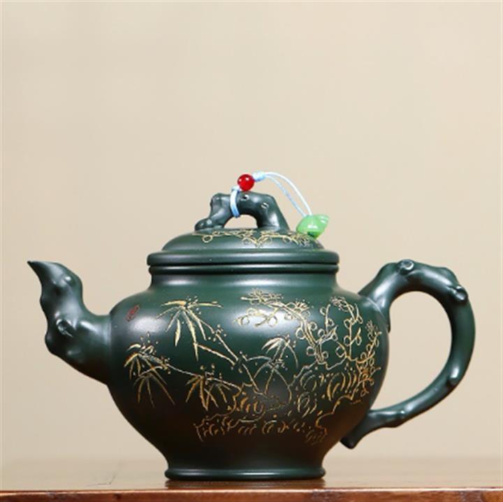 410cc原礦綠泥金縷報春泡茶壺POT9420