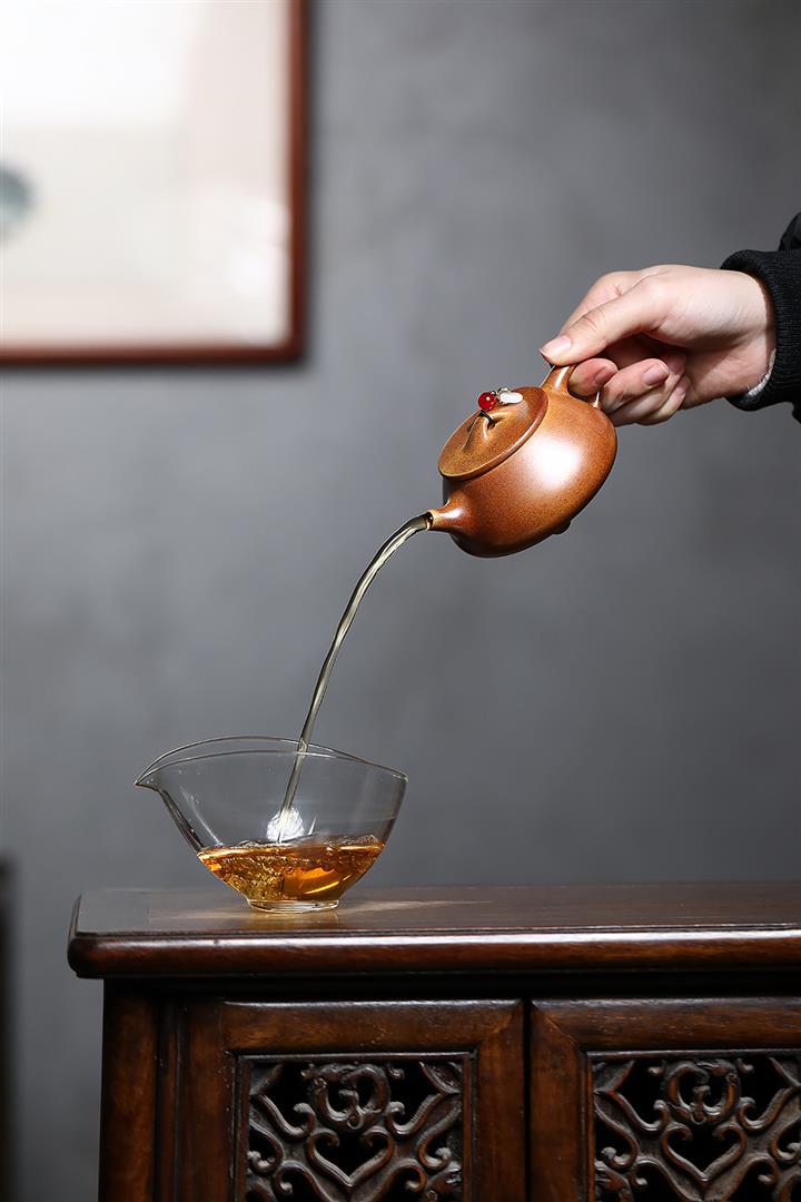 【泥料特點】砂土氣重,似淳實農民,日久使用,漸露鋒芒,養成變化,溫潤莊重。紫砂是壹種雙重氣孔結構的多孔性材質,氣孔微細,密度高。用紫砂壺沏茶,不失原味,且香不渙散,得茶之真香真味。紫砂使用越久,壺身色澤越發光亮照人,氣韻溫雅。紫砂壺長久使用器身會因撫摸擦拭,變得越發溫潤光澤。