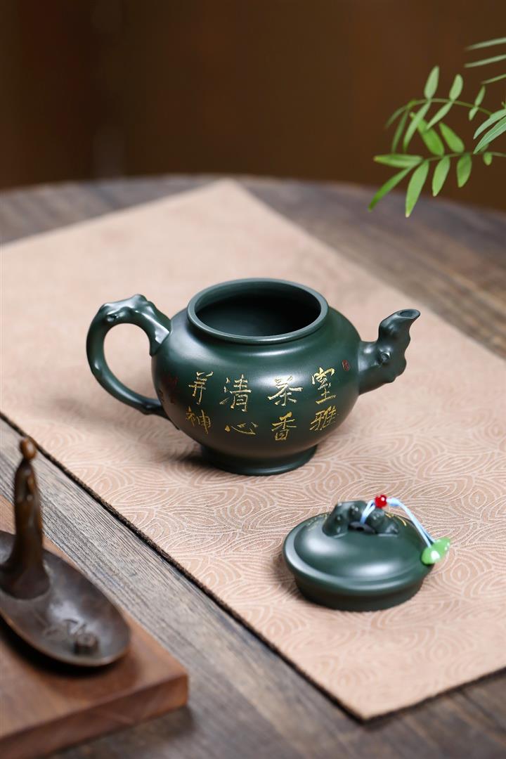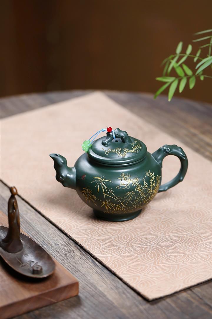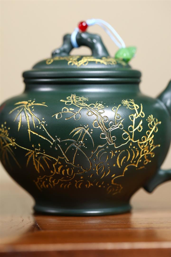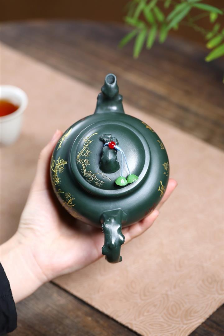 410cc原礦綠泥金縷報春泡茶壺POT9420