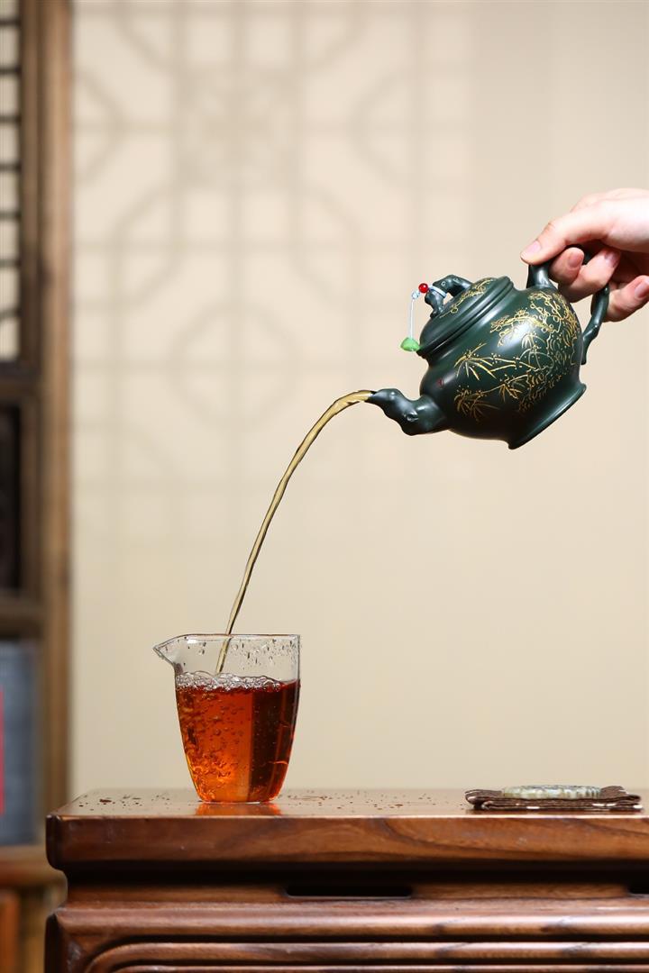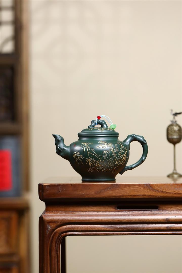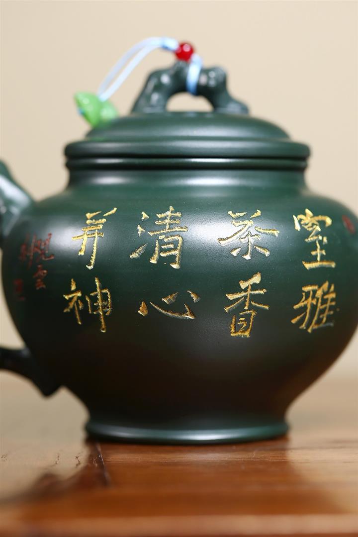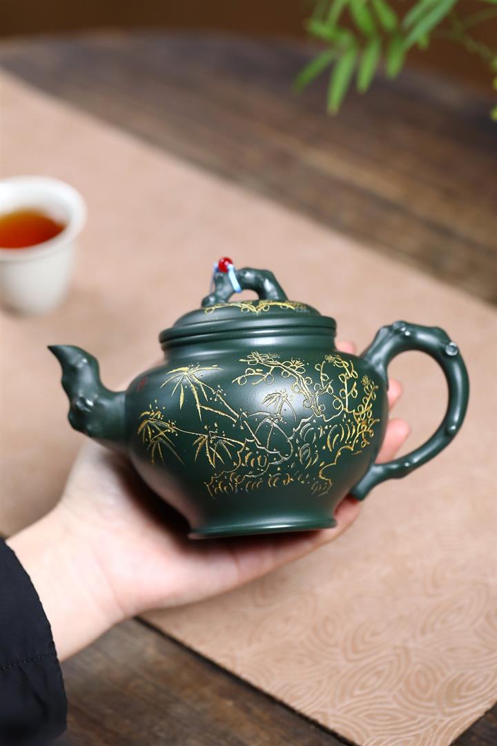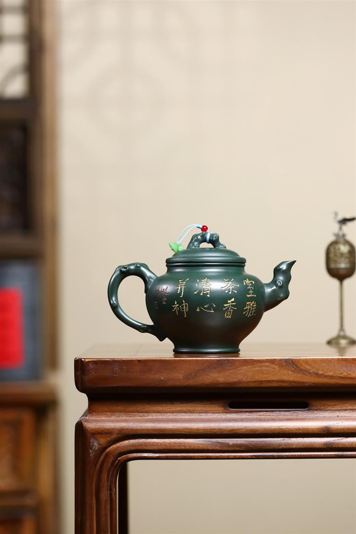 410cc原礦綠泥金縷報春泡茶壺POT9420