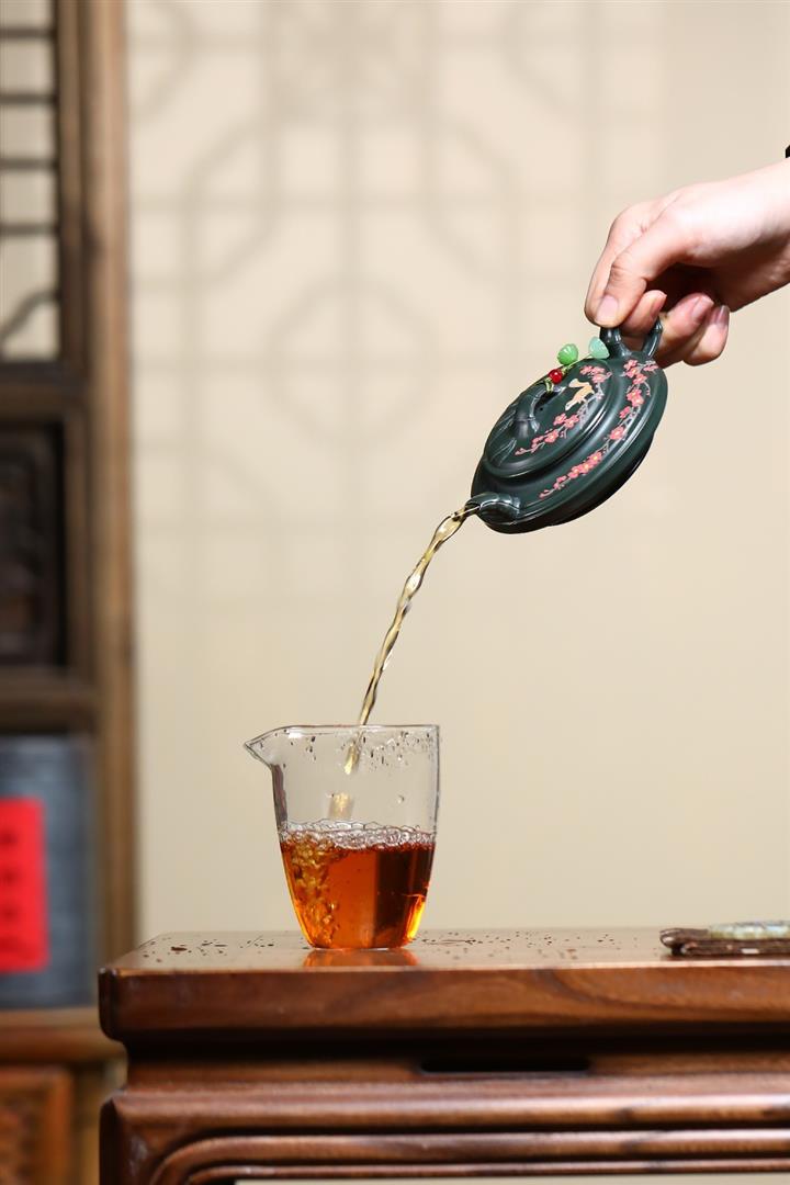 【泥料特點】砂土氣重,似淳實農民,日久使用,漸露鋒芒,養成變化,溫潤莊重。紫砂是壹種雙重氣孔結構的多孔性材質,氣孔微細,密度高。用紫砂壺沏茶,不失原味,且香不渙散,得茶之真香真味。紫砂使用越久,壺身色澤越發光亮照人,氣韻溫雅。紫砂壺長久使用器身會因撫摸擦拭,變得越發溫潤光澤。