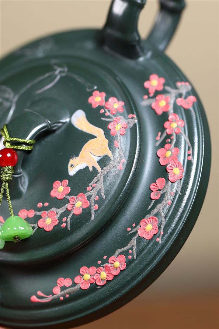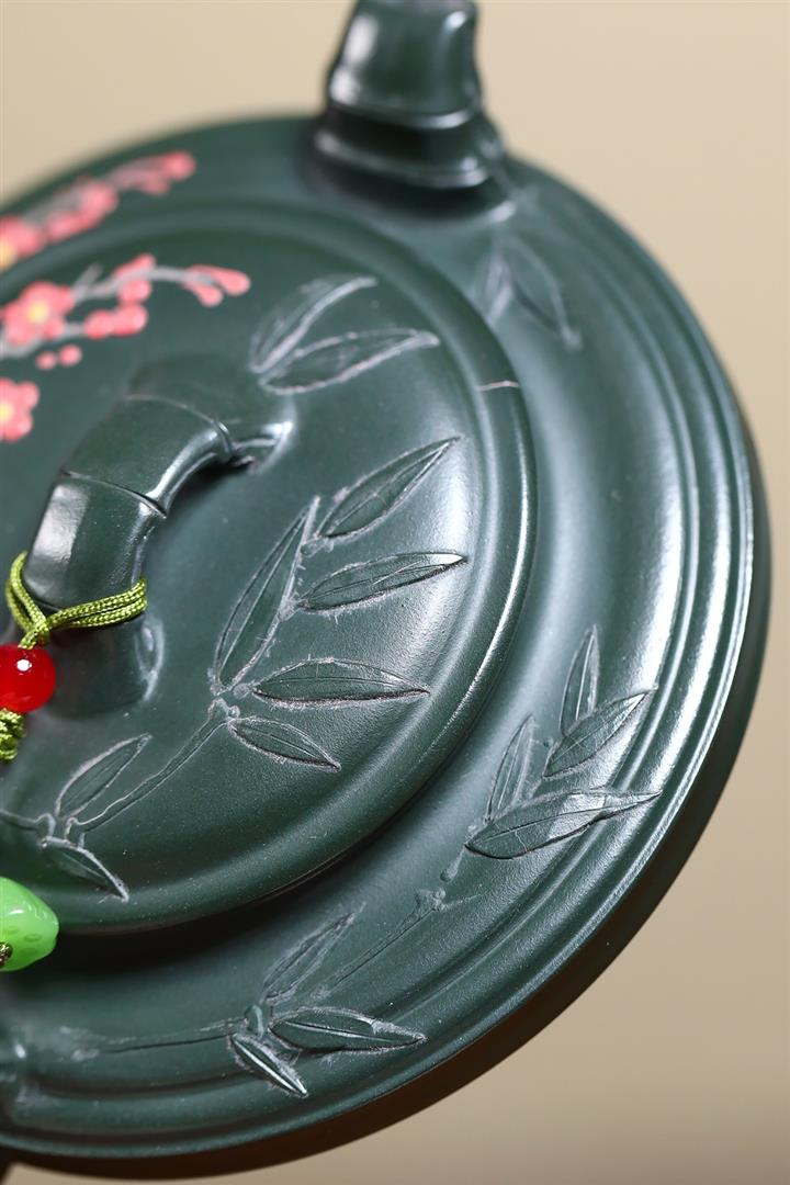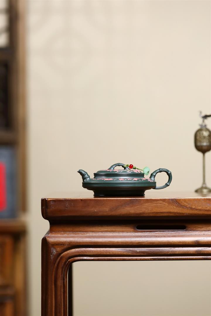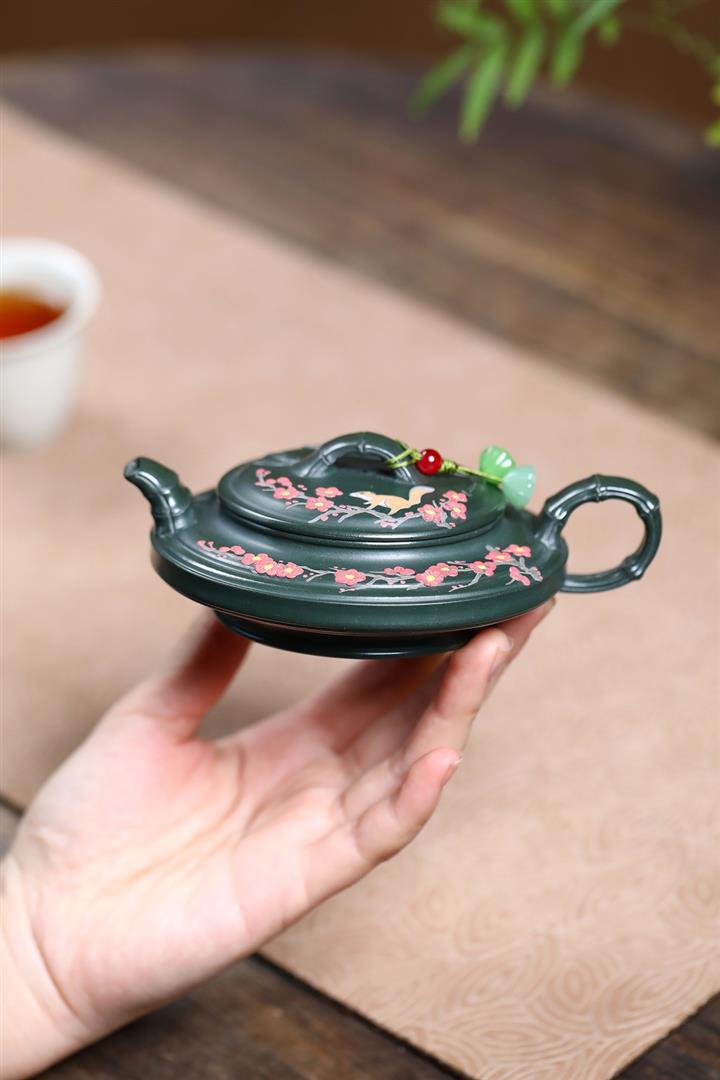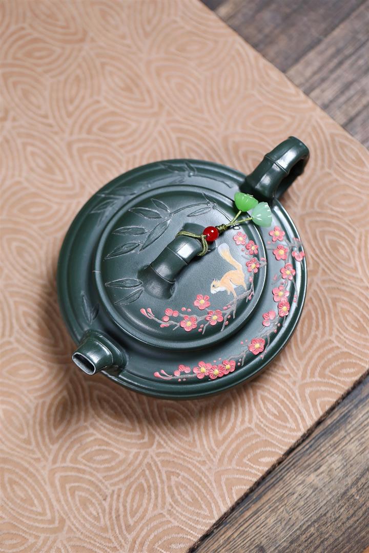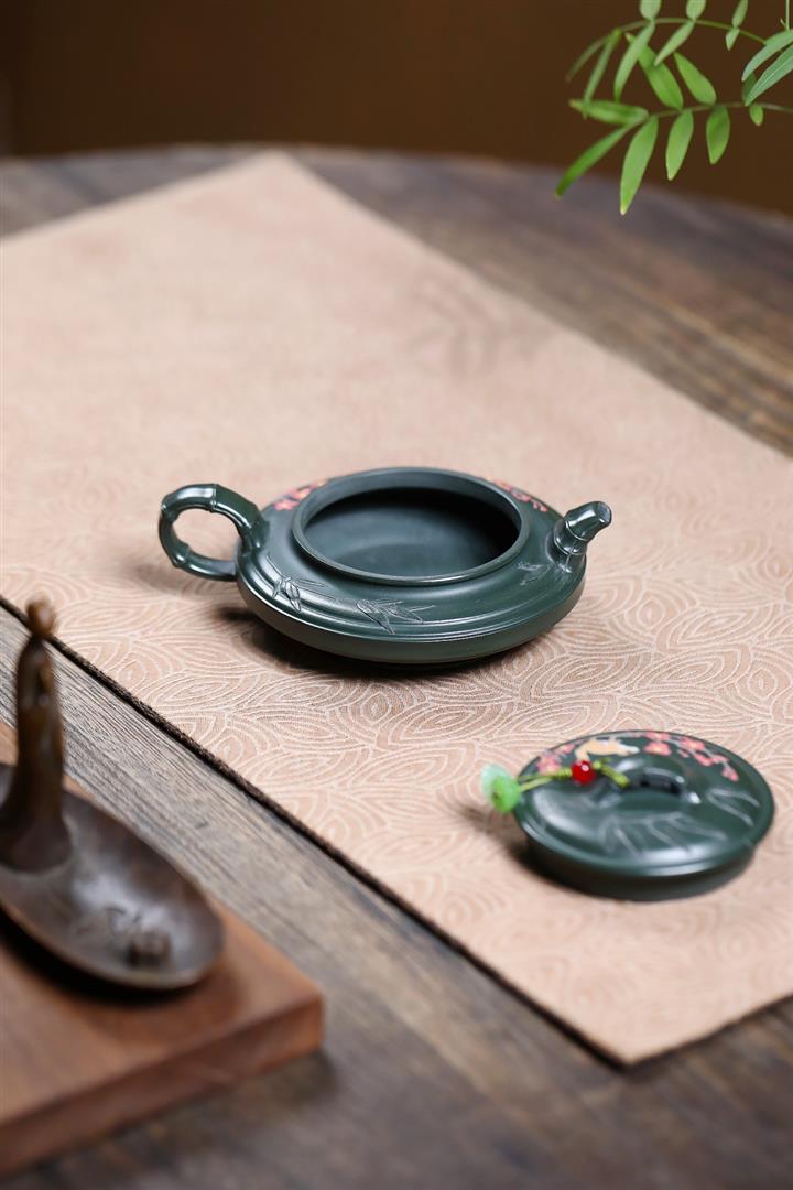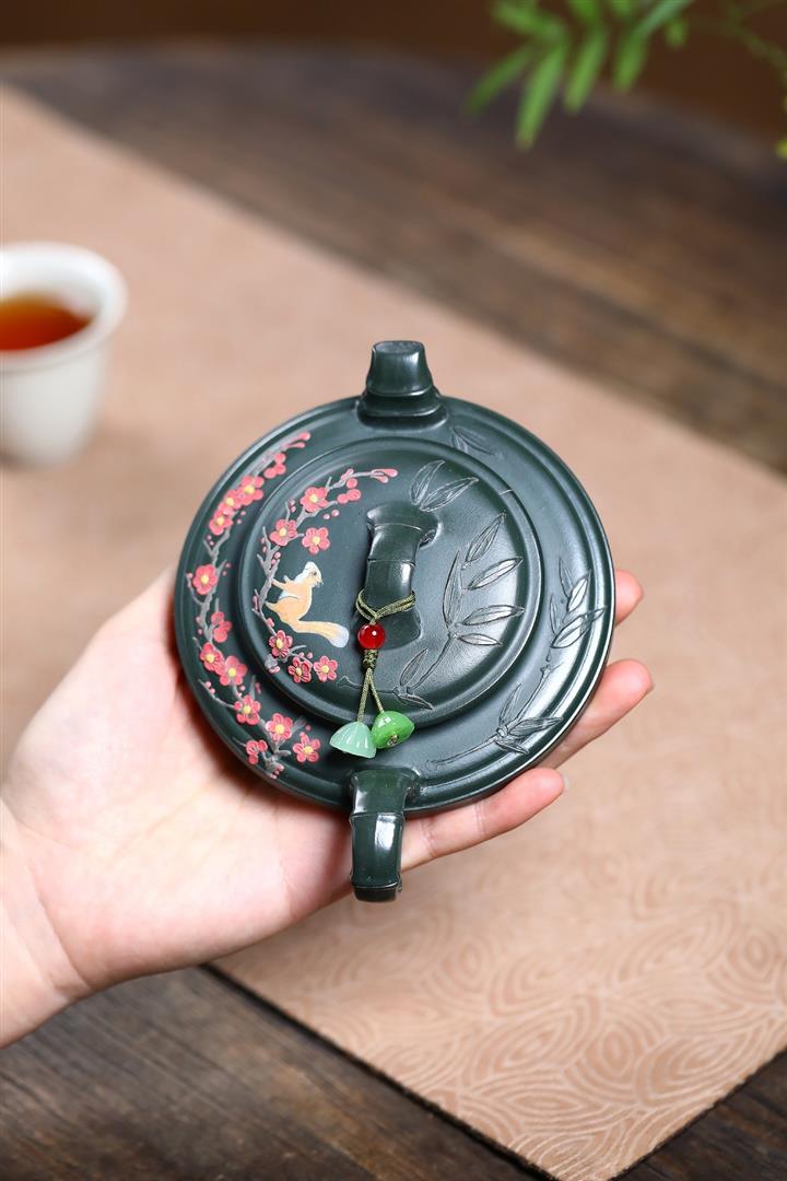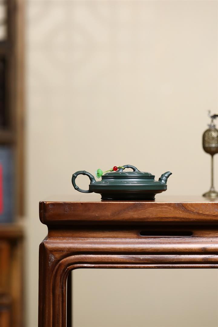 300cc原礦墨綠泥龍鳳呈祥漢瓦茶壺POT9428