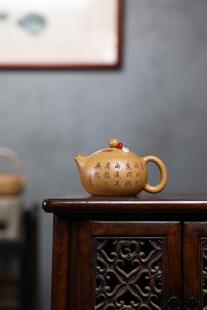 【作品介紹】此款壺形線條流暢,壺把,壺嘴,壺身壹氣呵成栩栩如生,是收藏把玩的好壺,泥料色澤古樸典雅,日久使用,漸露鋒芒,養成變化快,溫潤莊重,用其泡茶,使用的年代久,壺身就溫潤,泡出來的茶湯也就醇郁芳馨。