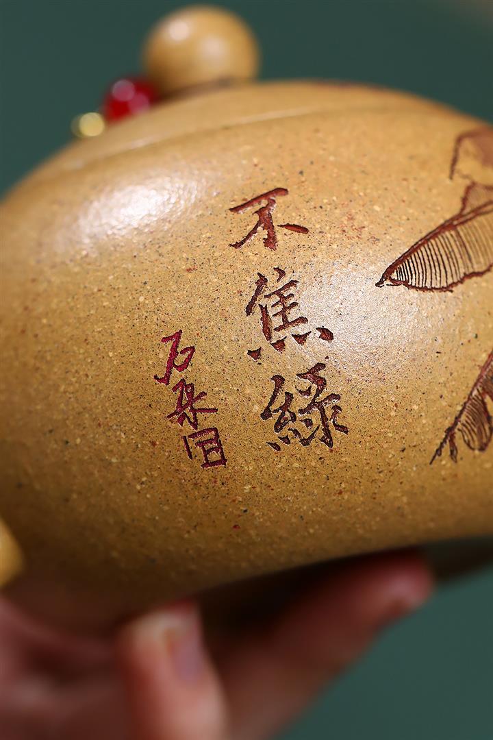 【泥料特點】砂土氣重,似淳實農民,日久使用,漸露鋒芒,養成變化,溫潤莊重。紫砂是壹種雙重氣孔結構的多孔性材質,氣孔微細,密度高。用紫砂壺沏茶,不失原味,且香不渙散,得茶之真香真味。紫砂使用越久,壺身色澤越發光亮照人,氣韻溫雅。紫砂壺長久使用器身會因撫摸擦拭,變得越發溫潤光澤。