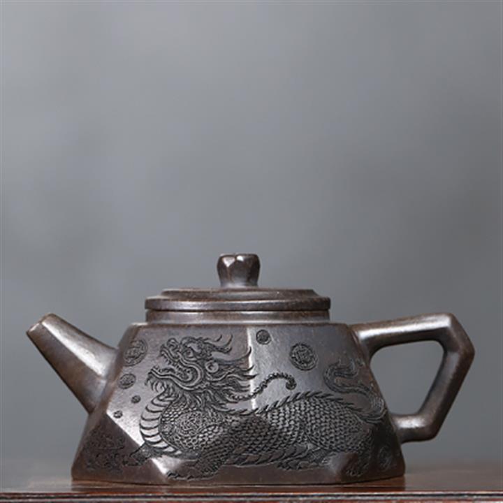 300cc原礦墨綠泥龍鳳呈祥漢瓦茶壺POT9428