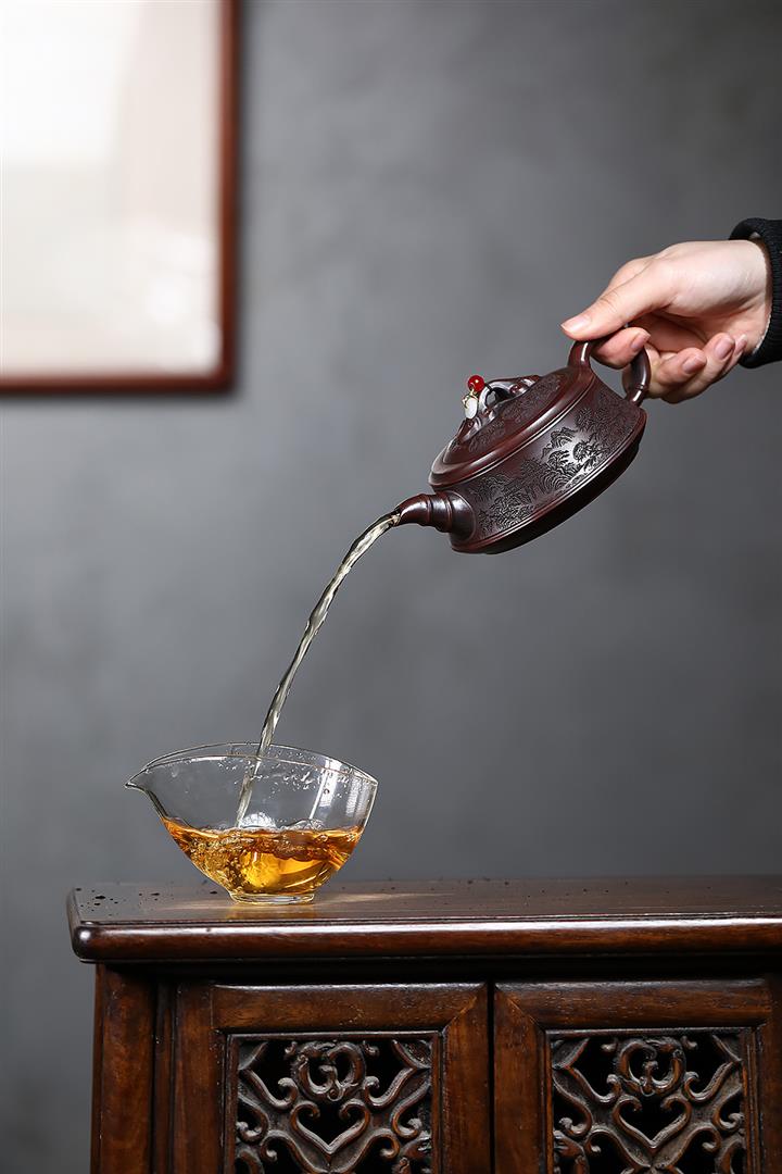 【泥料特點】砂土氣重,似淳實農民,日久使用,漸露鋒芒,養成變化,溫潤莊重。紫砂是壹種雙重氣孔結構的多孔性材質,氣孔微細,密度高。用紫砂壺沏茶,不失原味,且香不渙散,得茶之真香真味。紫砂使用越久,壺身色澤越發光亮照人,氣韻溫雅。紫砂壺長久使用器身會因撫摸擦拭,變得越發溫潤光澤。