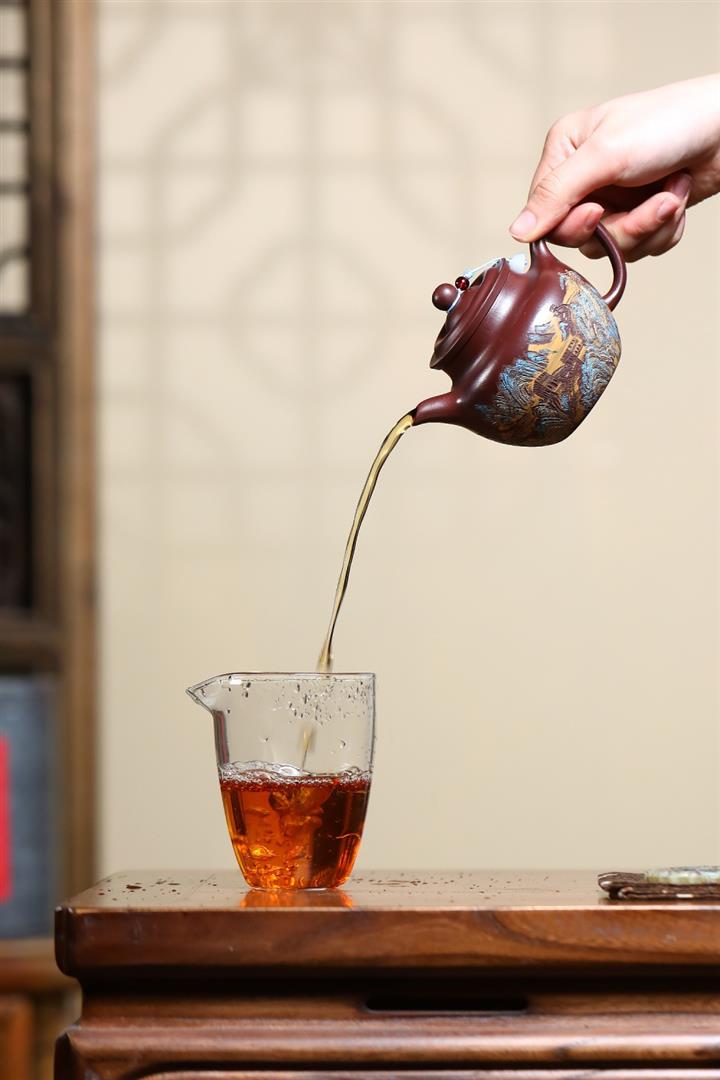【泥料特點】砂土氣重,似淳實農民,日久使用,漸露鋒芒,養成變化,溫潤莊重。紫砂是壹種雙重氣孔結構的多孔性材質,氣孔微細,密度高。用紫砂壺沏茶,不失原味,且香不渙散,得茶之真香真味。紫砂使用越久,壺身色澤越發光亮照人,氣韻溫雅。紫砂壺長久使用器身會因撫摸擦拭,變得越發溫潤光澤。