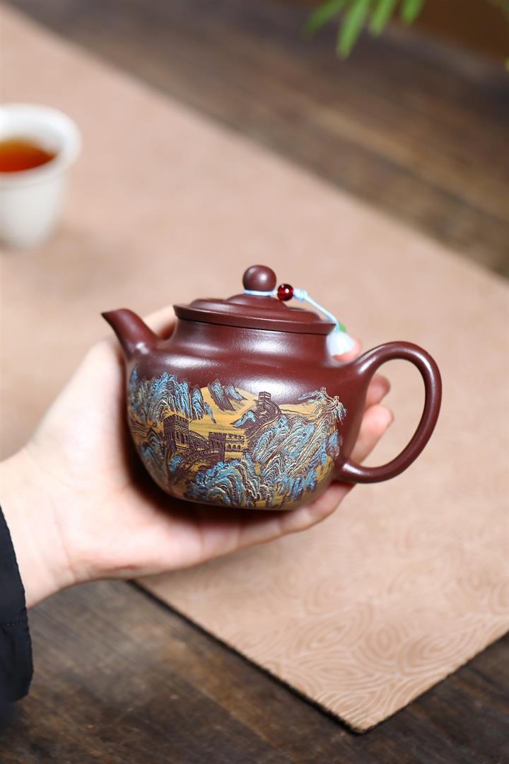 210cc原礦古紅泥四方長城泡茶壺POT9436