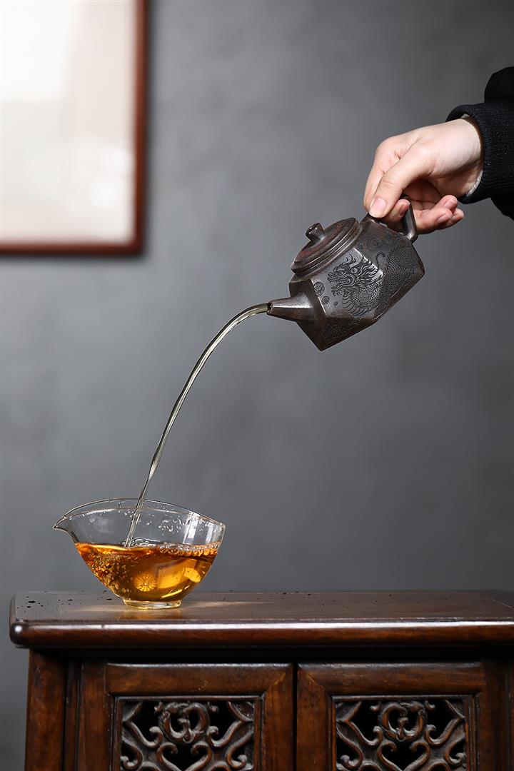 【泥料特點】砂土氣重,似淳實農民,日久使用,漸露鋒芒,養成變化,溫潤莊重。紫砂是壹種雙重氣孔結構的多孔性材質,氣孔微細,密度高。用紫砂壺沏茶,不失原味,且香不渙散,得茶之真香真味。紫砂使用越久,壺身色澤越發光亮照人,氣韻溫雅。紫砂壺長久使用器身會因撫摸擦拭,變得越發溫潤光澤。