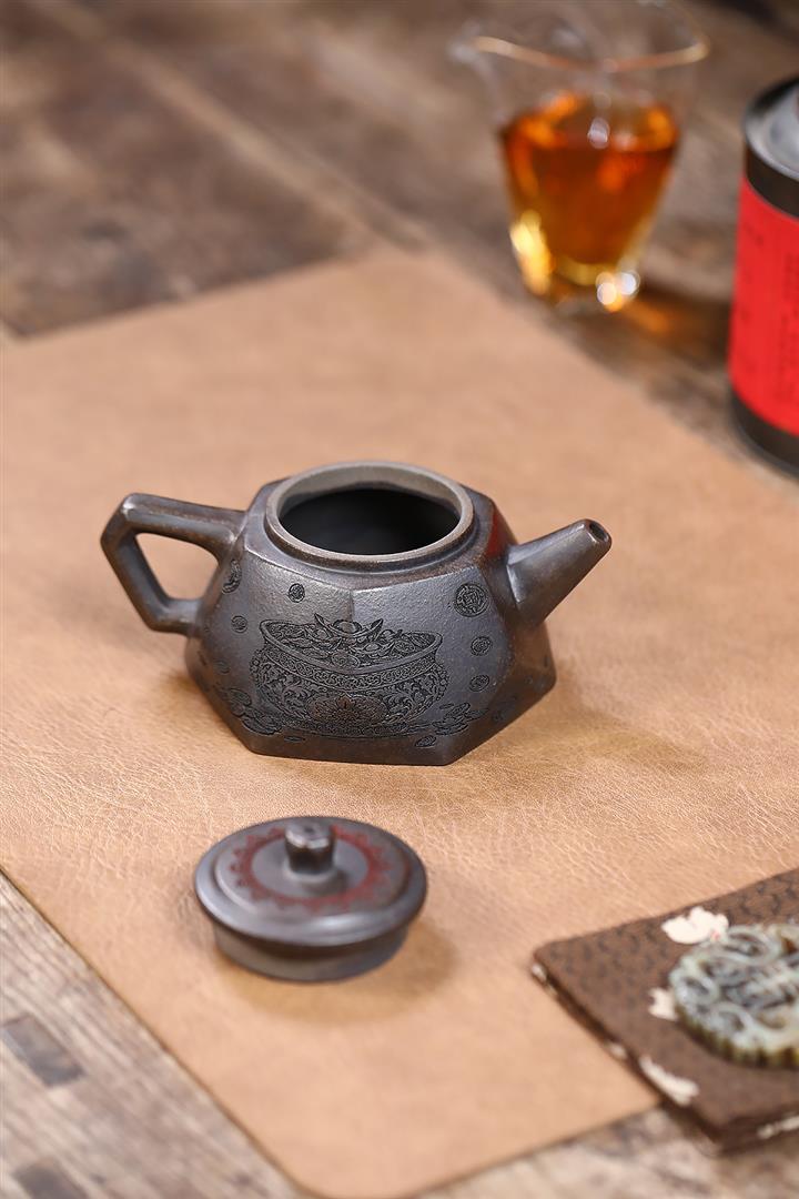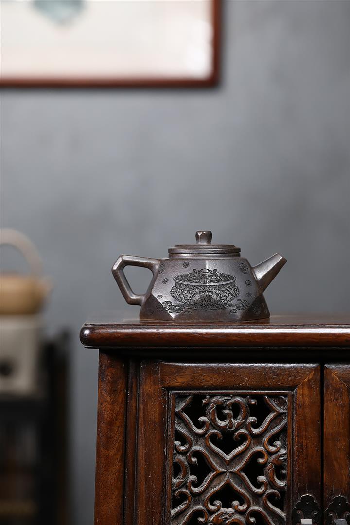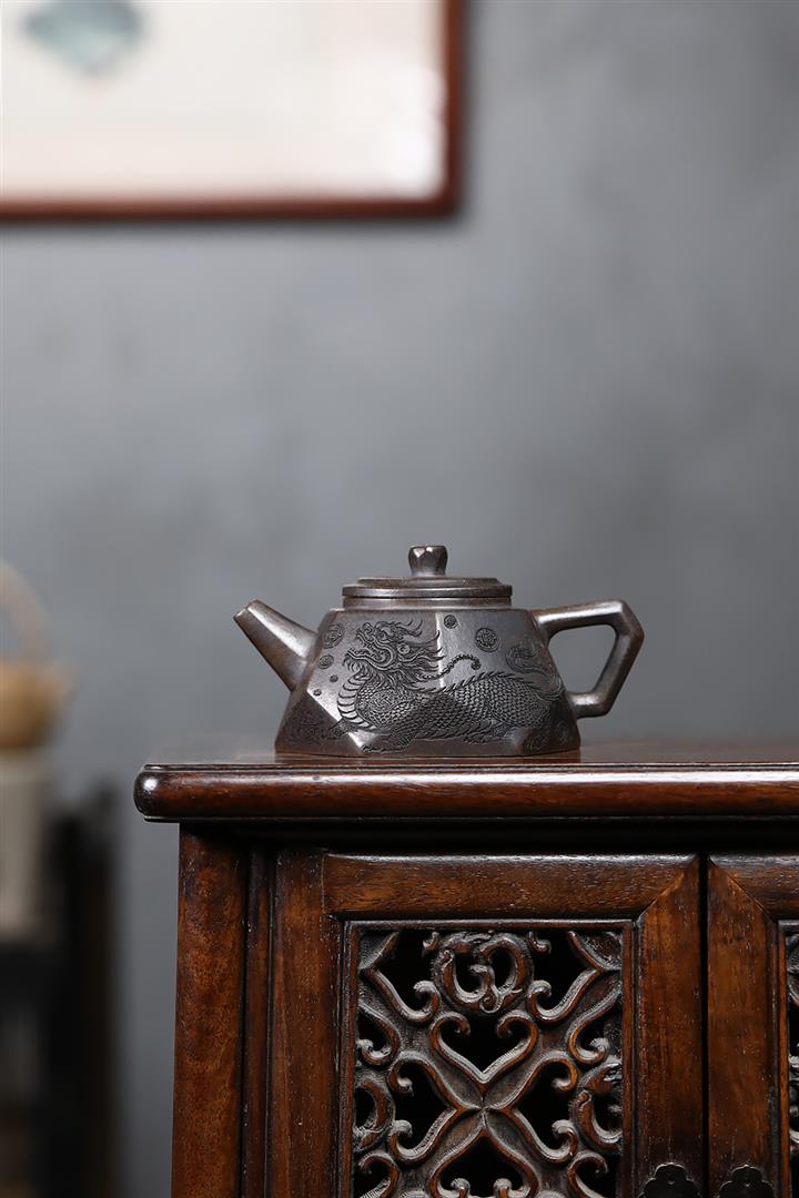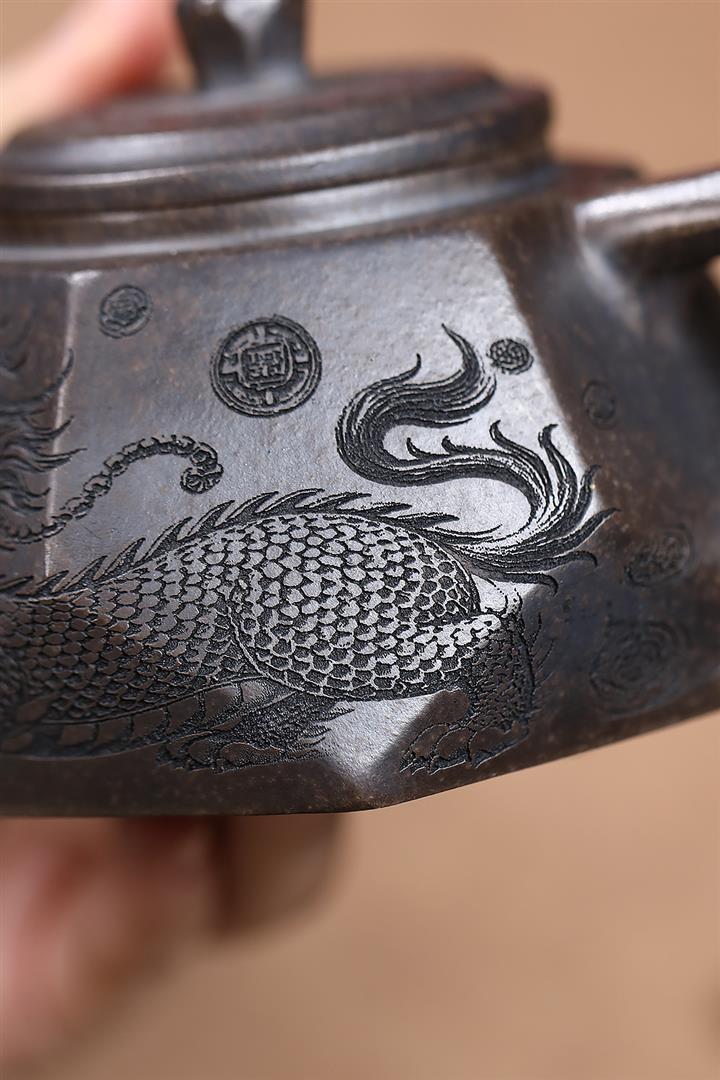 340cc原礦紫泥刻繪山水仿古泡茶壺POT9444
