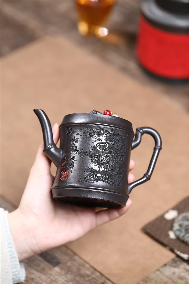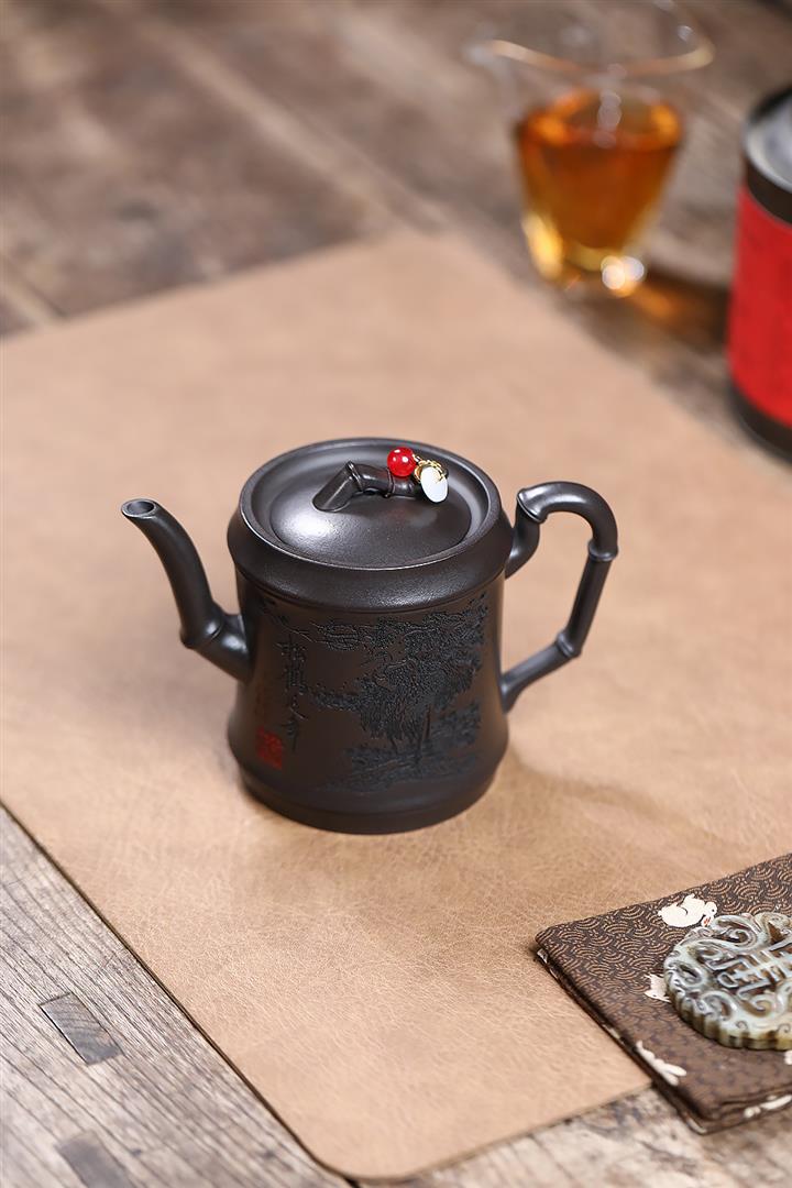 340cc原礦紫泥刻繪山水仿古泡茶壺POT9444