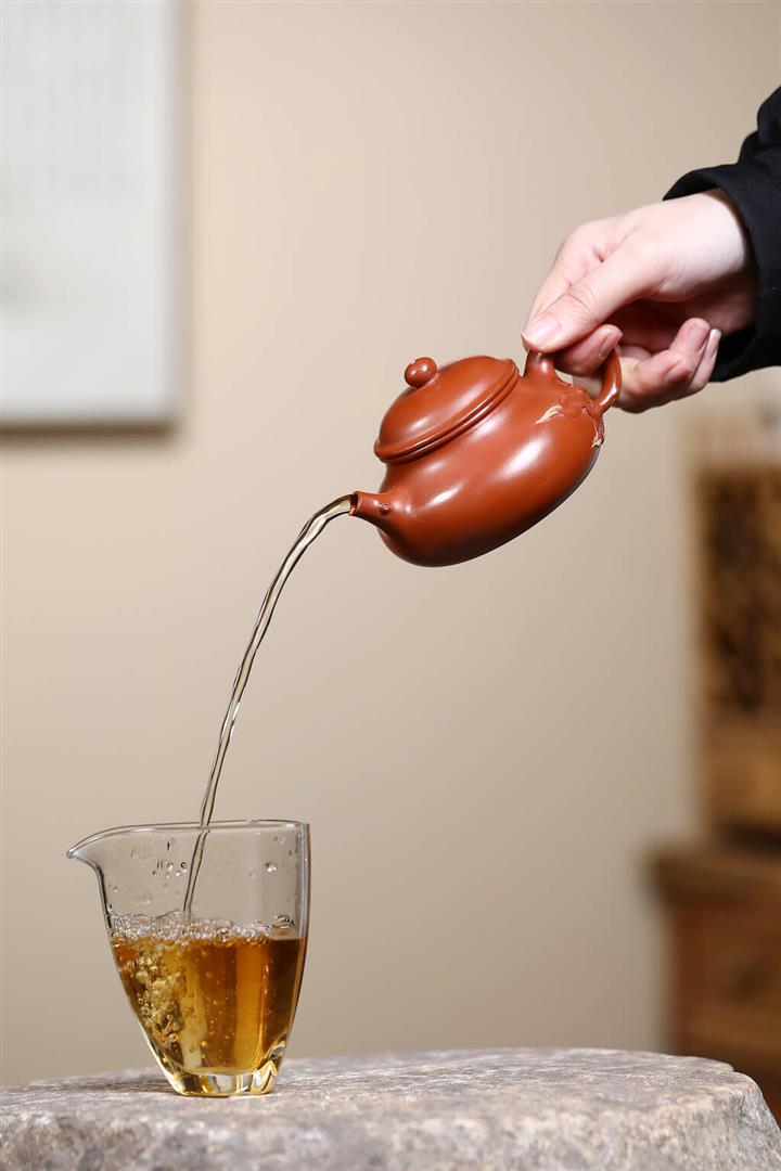 【泥料特點】砂土氣重,似淳實農民,日久使用,漸露鋒芒,養成變化,溫潤莊重。紫砂是壹種雙重氣孔結構的多孔性材質,氣孔微細,密度高。用紫砂壺沏茶,不失原味,且香不渙散,得茶之真香真味。紫砂使用越久,壺身色澤越發光亮照人,氣韻溫雅。紫砂壺長久使用器身會因撫摸擦拭,變得越發溫潤光澤。