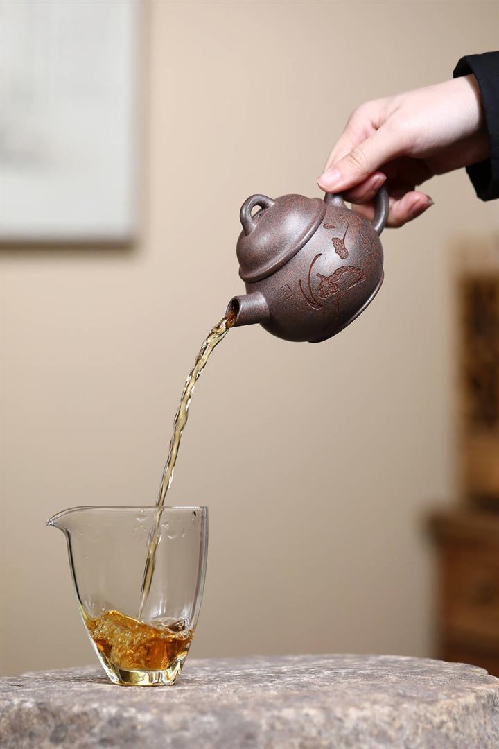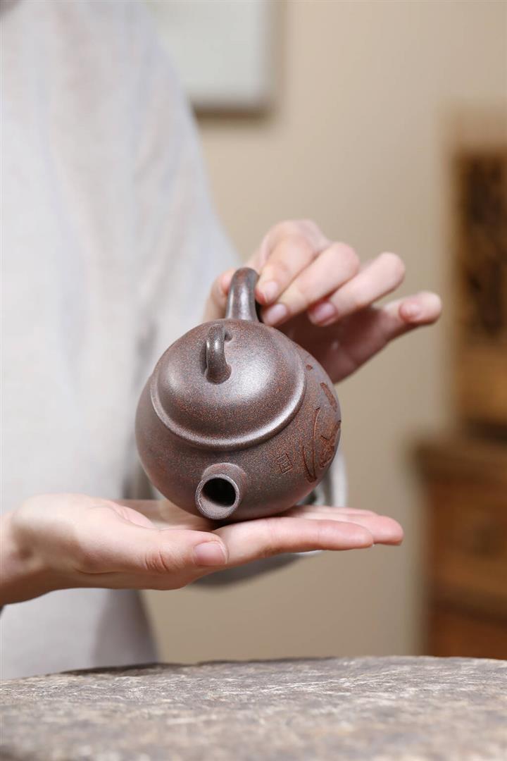 【泥料特點】砂土氣重,似淳實農民,日久使用,漸露鋒芒,養成變化,溫潤莊重。紫砂是壹種雙重氣孔結構的多孔性材質,氣孔微細,密度高。用紫砂壺沏茶,不失原味,且香不渙散,得茶之真香真味。紫砂使用越久,壺身色澤越發光亮照人,氣韻溫雅。紫砂壺長久使用器身會因撫摸擦拭,變得越發溫潤光澤。