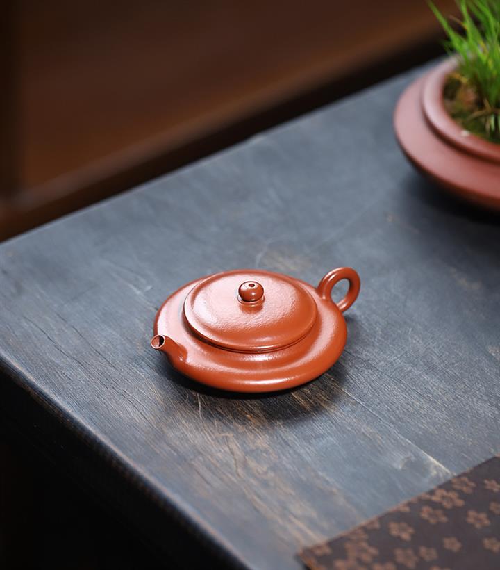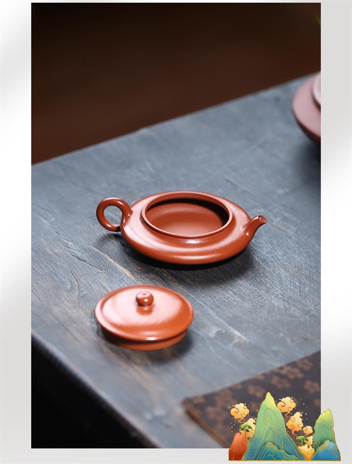 70cc原礦朱泥虛扁小茶壺泡茶壺POT9458
