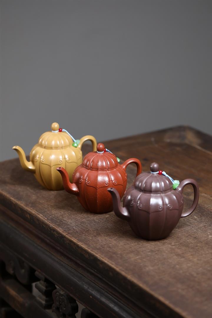 300cc原礦黃金段泥.降坡泥.紫泥筋紋三暉泡茶壺POT9463