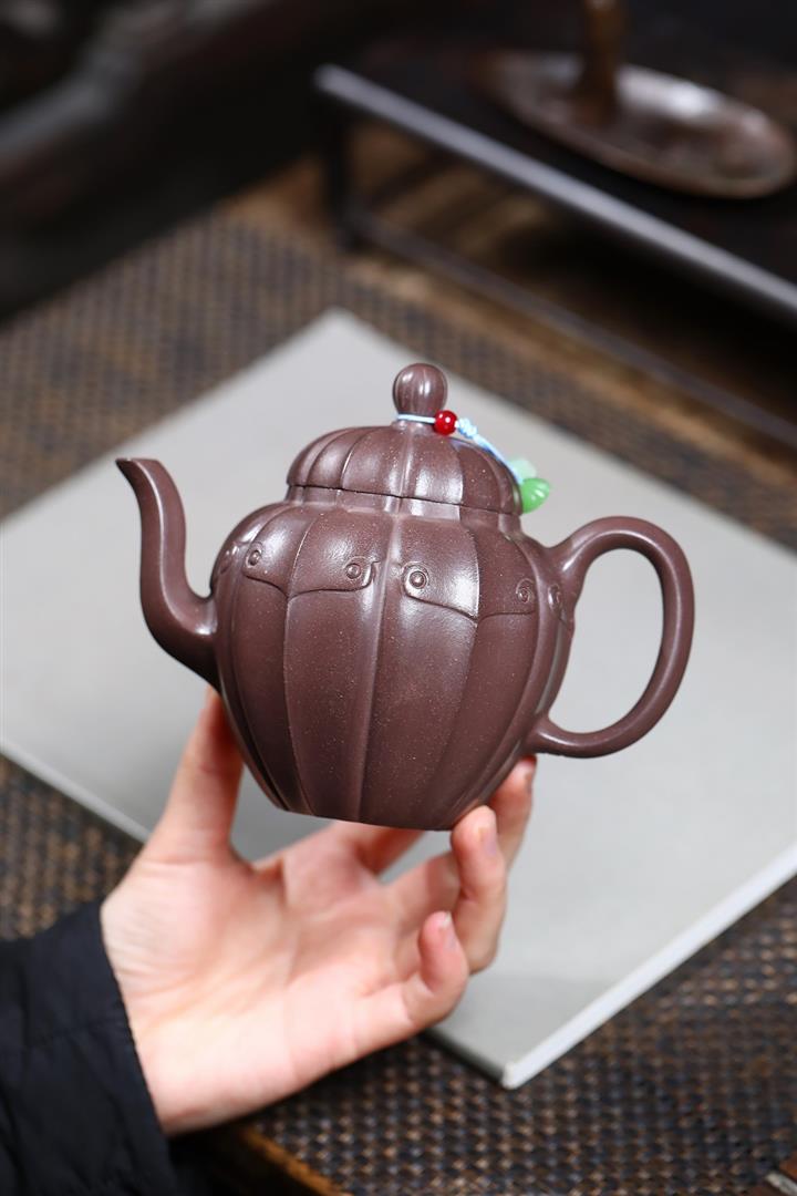 【作品介紹】此款壺形線條流暢,壺把,壺嘴,壺身壹氣呵成栩栩如生,是收藏把玩的好壺,泥料色澤古樸典雅,日久使用,漸露鋒芒,養成變化快,溫潤莊重,用其泡茶,使用的年代久,壺身就溫潤,泡出來的茶湯也就醇郁芳馨。