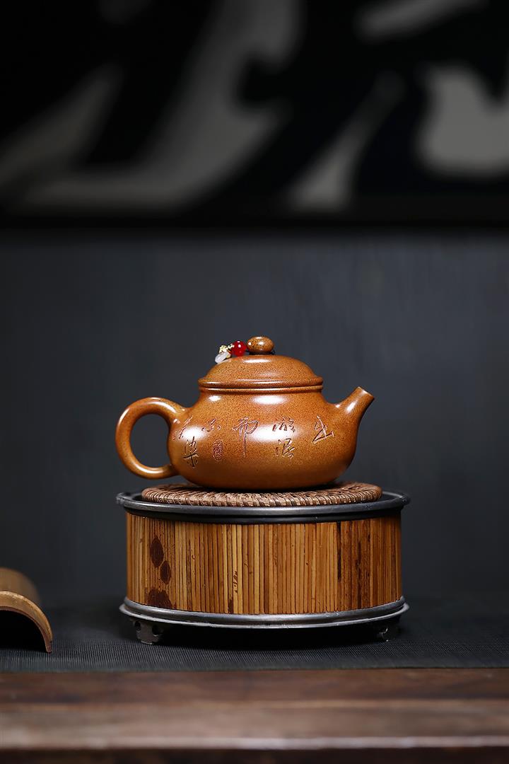 230cc原礦紫泥鑲金容天光素泡茶壺POT9474