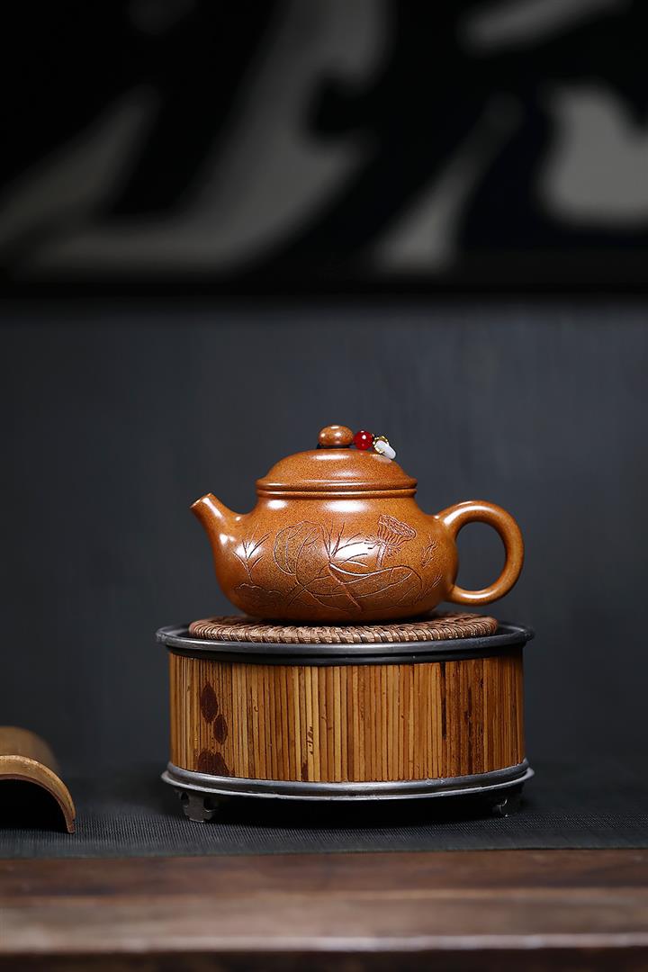 220cc原礦段泥火雲燒竹影秦權泡茶壺POT9469