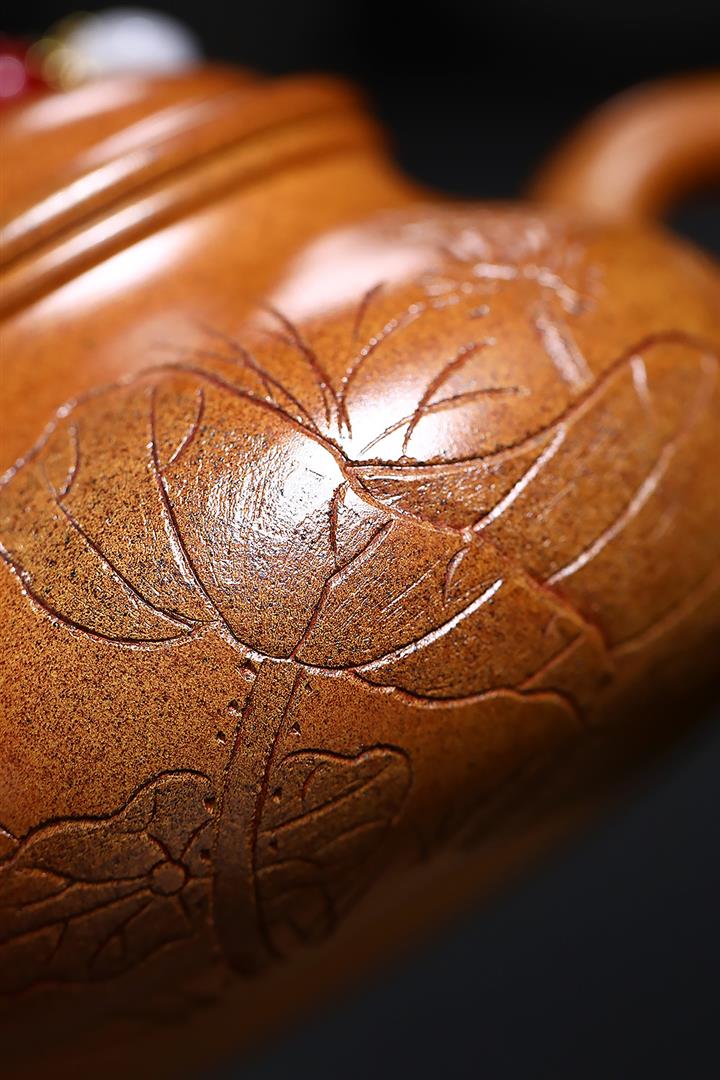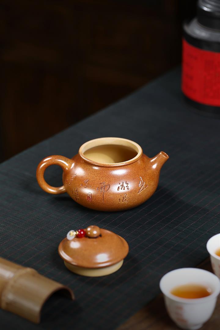 【作品介紹】此款壺形線條流暢,壺把,壺嘴,壺身壹氣呵成栩栩如生,是收藏把玩的好壺,泥料色澤古樸典雅,日久使用,漸露鋒芒,養成變化快,溫潤莊重,用其泡茶,使用的年代久,壺身就溫潤,泡出來的茶湯也就醇郁芳馨。
