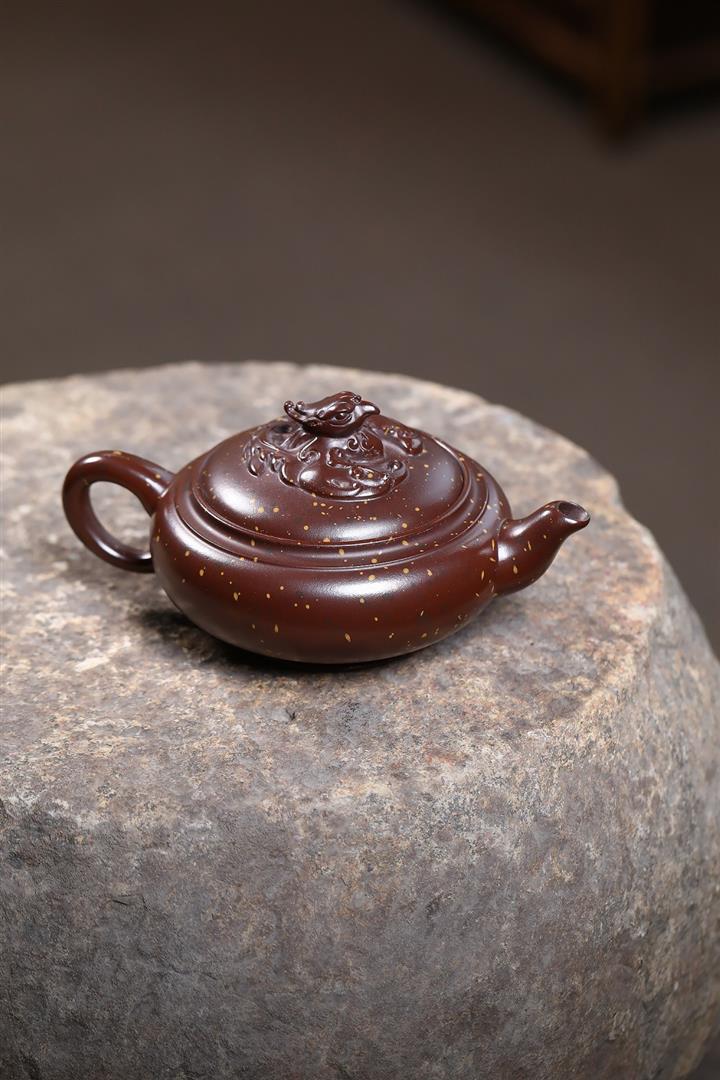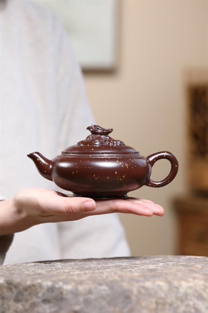 230cc原礦紫泥鑲金容天光素泡茶壺POT9474