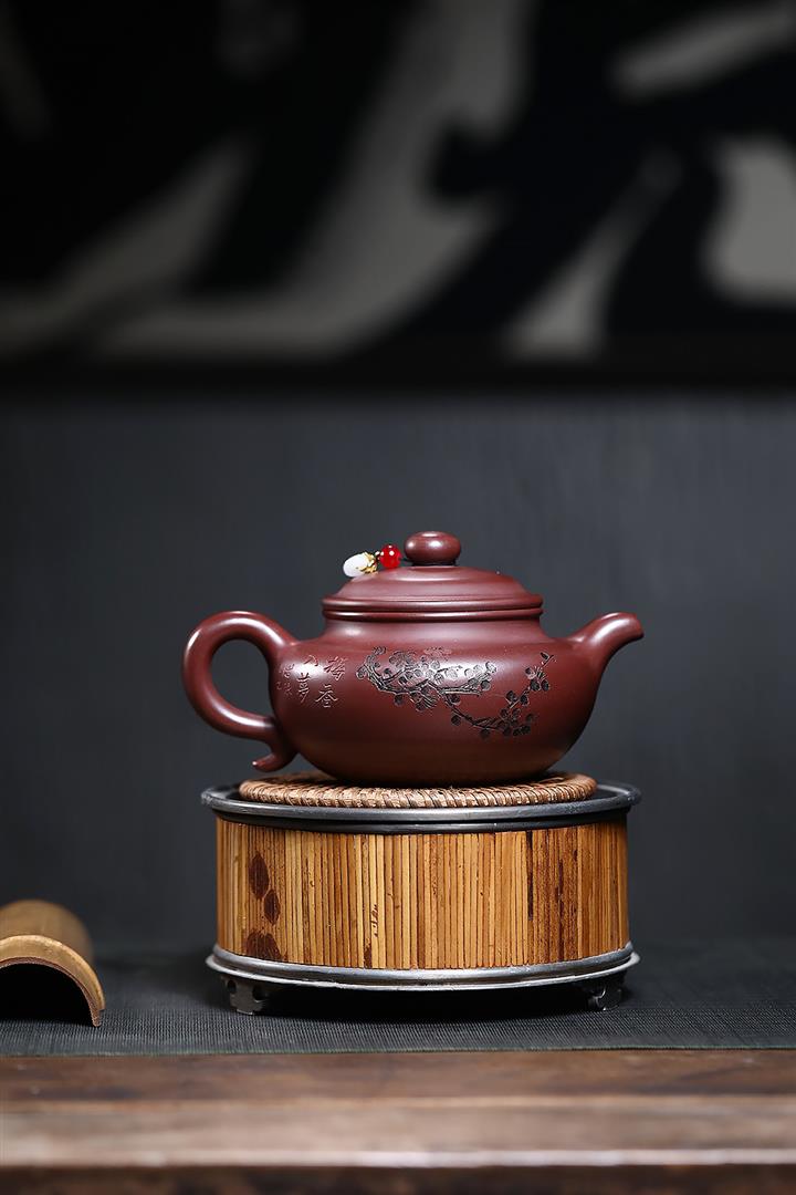 180cc原礦鐵血紅砂刻字寒江泡茶壺POT9481