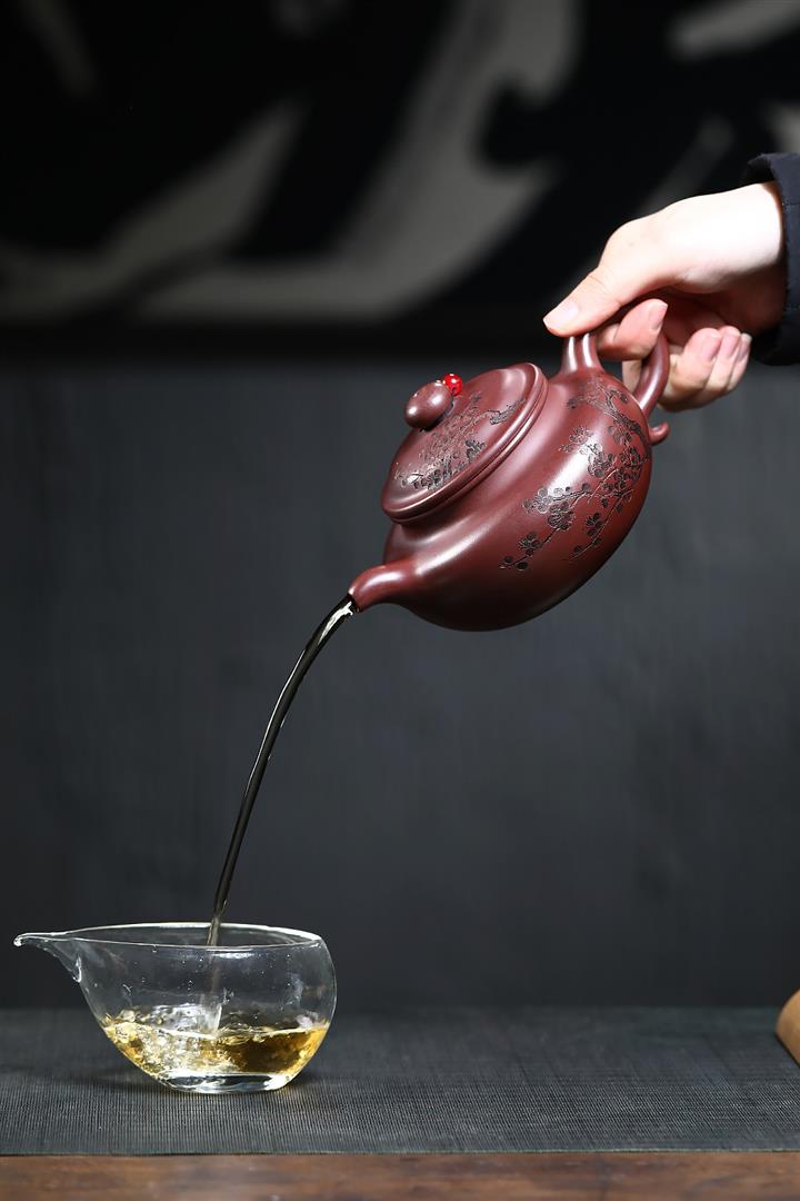 【泥料特點】砂土氣重,似淳實農民,日久使用,漸露鋒芒,養成變化,溫潤莊重。紫砂是壹種雙重氣孔結構的多孔性材質,氣孔微細,密度高。用紫砂壺沏茶,不失原味,且香不渙散,得茶之真香真味。紫砂使用越久,壺身色澤越發光亮照人,氣韻溫雅。紫砂壺長久使用器身會因撫摸擦拭,變得越發溫潤光澤。