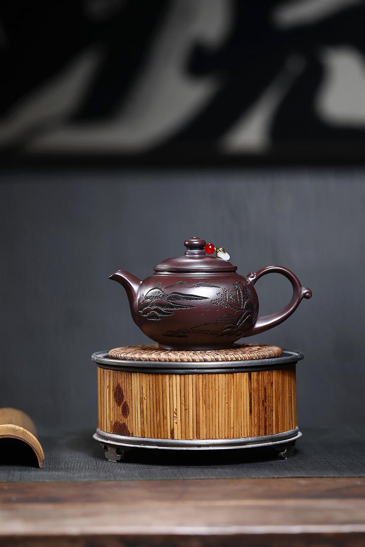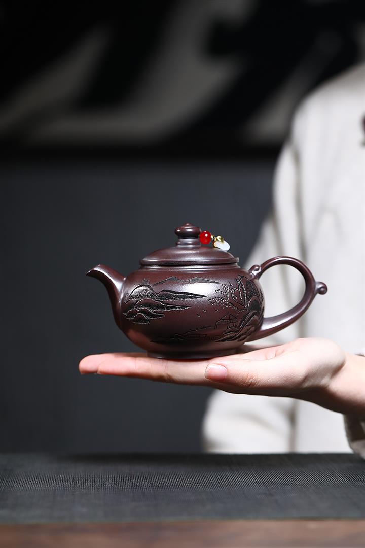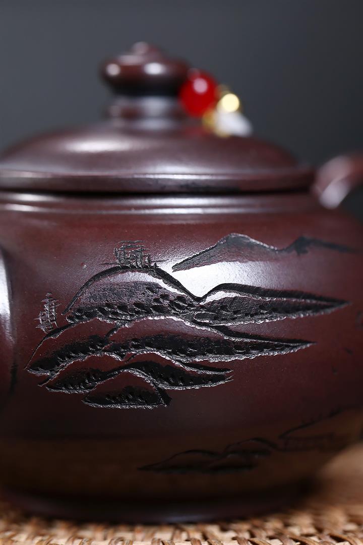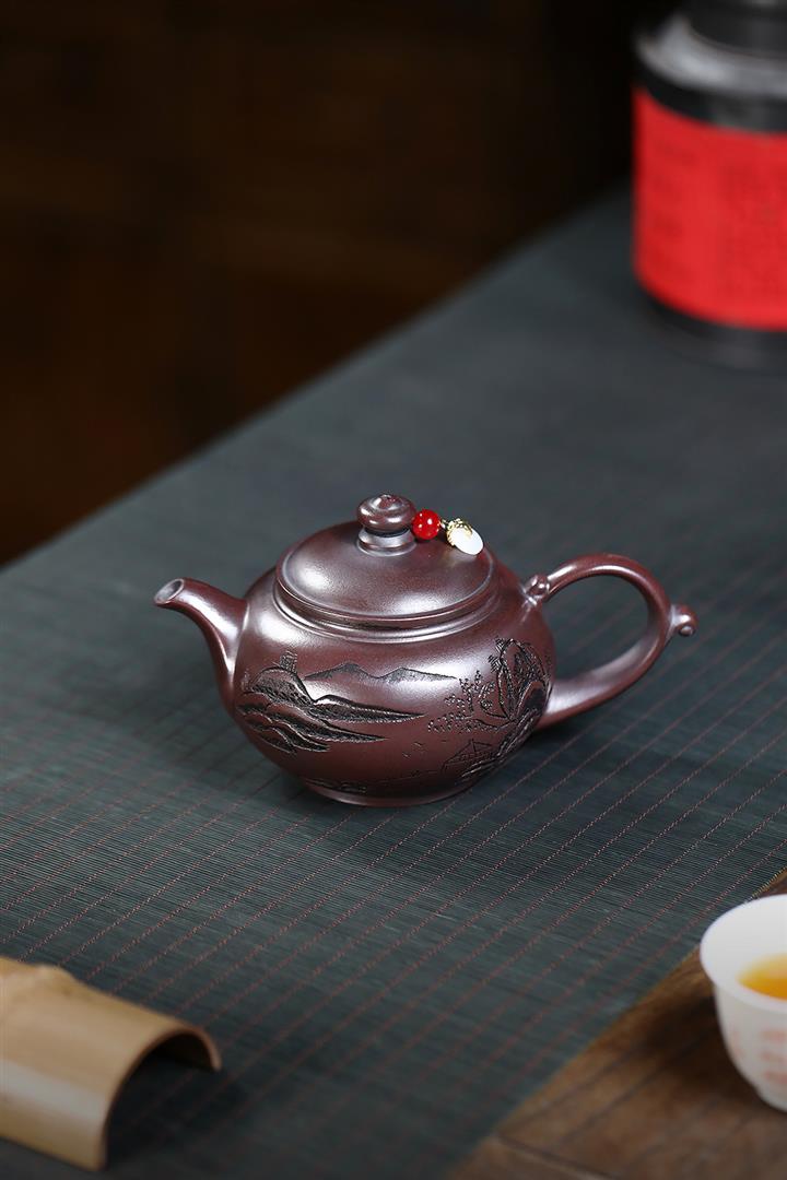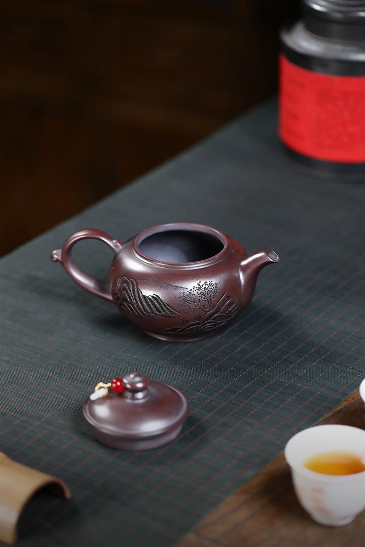 230cc原礦紫泥刻繪山水寒江泡茶壺POT9476