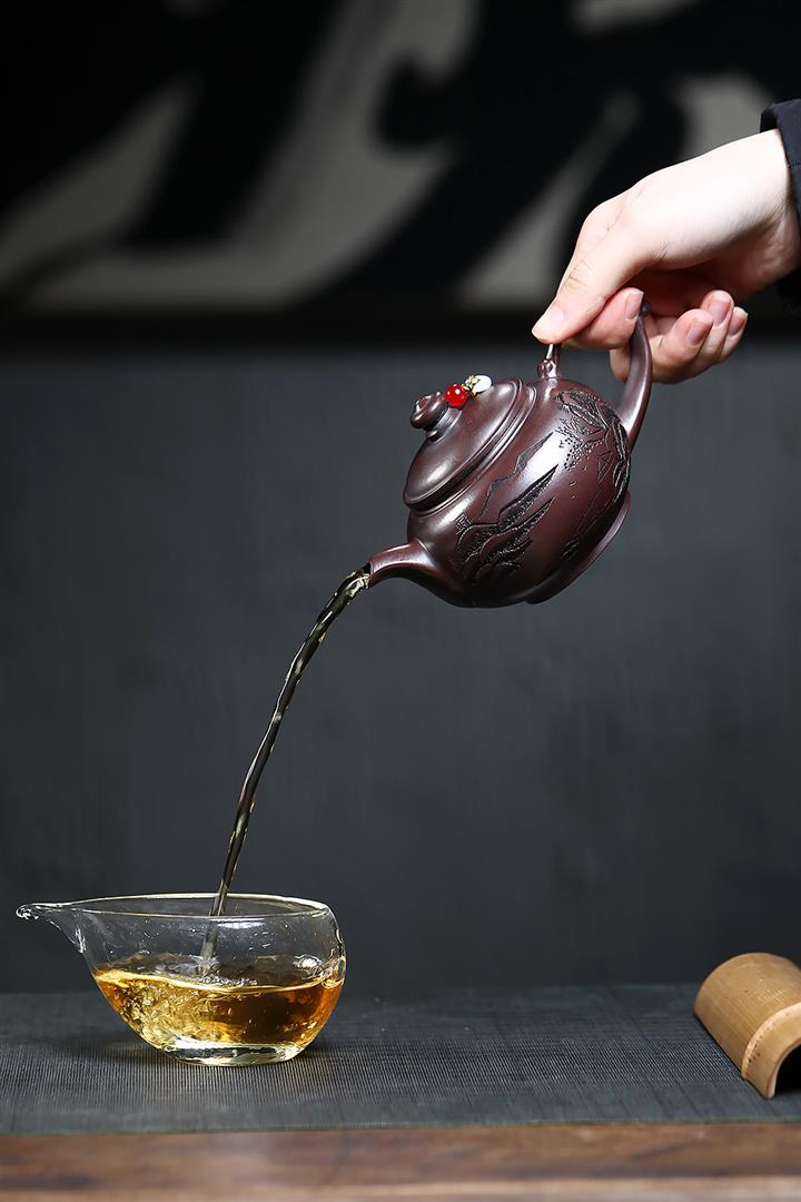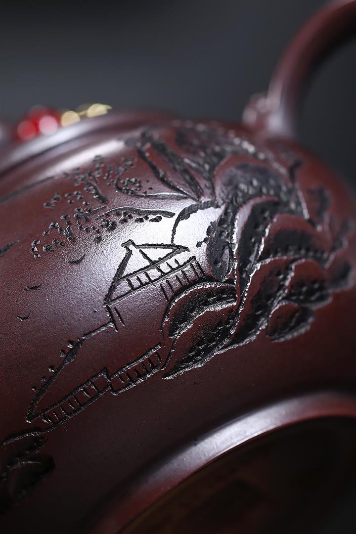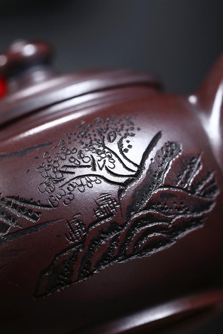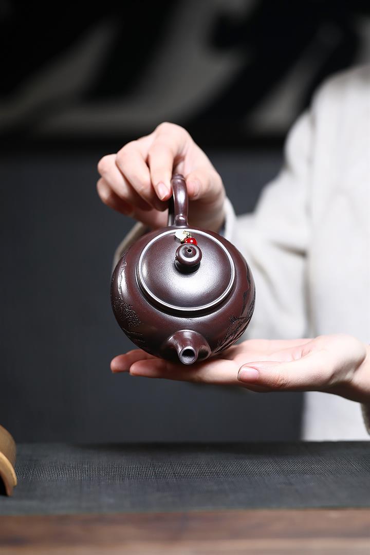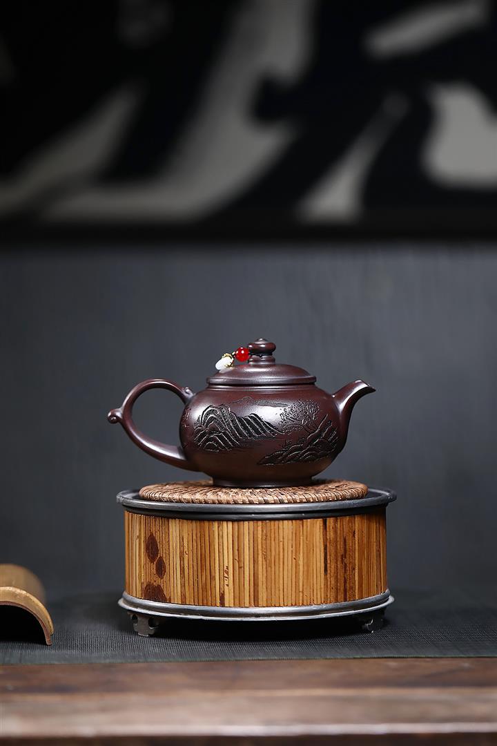 230cc原礦紫泥刻繪山水寒江泡茶壺POT9476