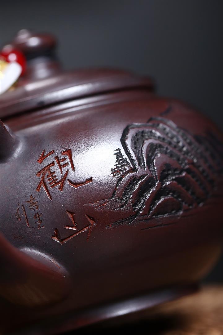 180cc原礦鐵血紅砂刻字寒江泡茶壺POT9481