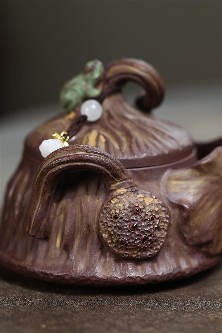 190cc原礦紫泥//段泥青蛙蓮子手抓壺茶壺POT9475