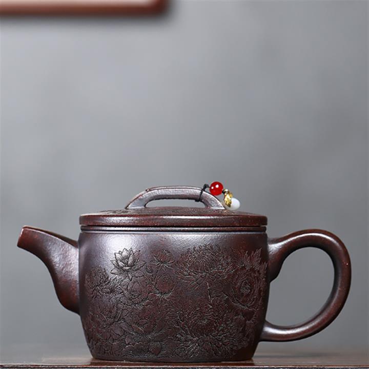 180cc原礦鐵血紅砂刻字寒江泡茶壺POT9481