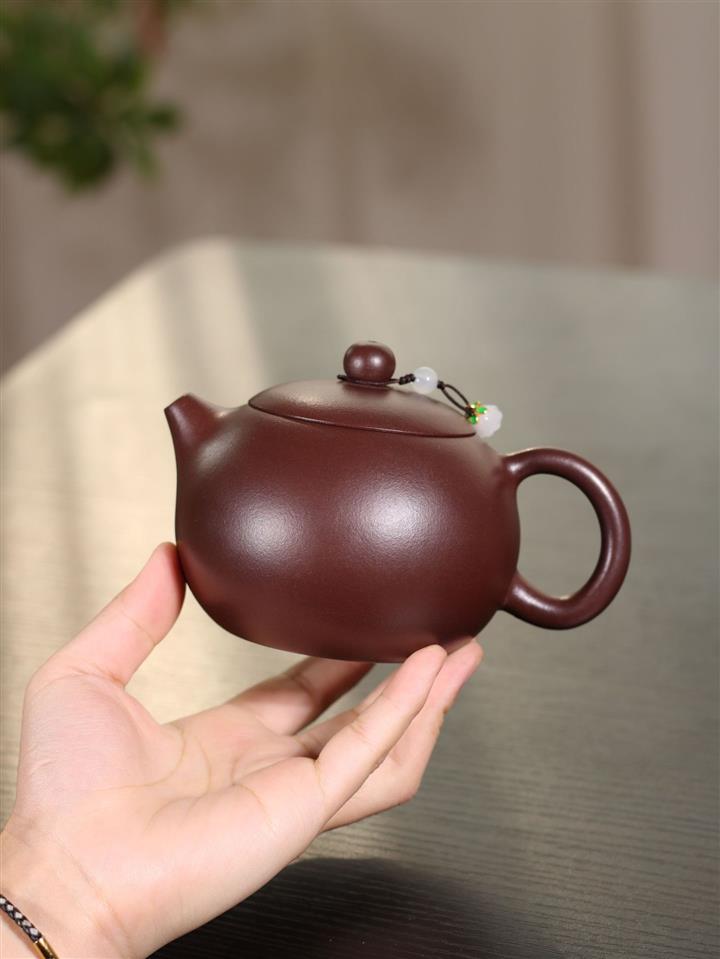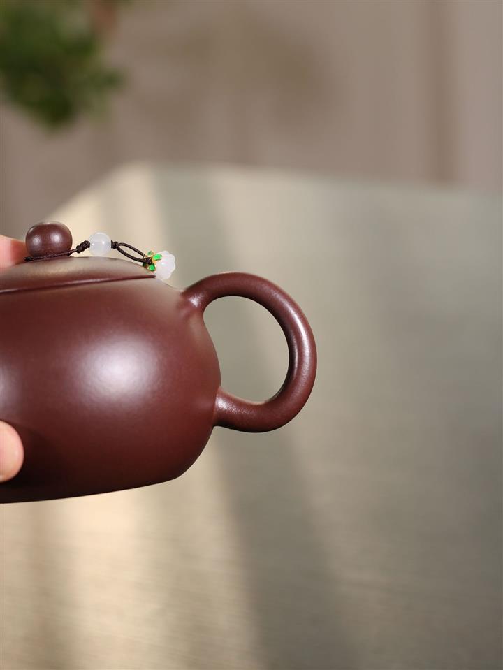 【作品介紹】此款壺形線條流暢,壺把,壺嘴,壺身壹氣呵成栩栩如生,是收藏把玩的好壺,泥料色澤古樸典雅,日久使用,漸露鋒芒,養成變化快,溫潤莊重,用其泡茶,使用的年代久,壺身就溫潤,泡出來的茶湯也就醇郁芳馨。