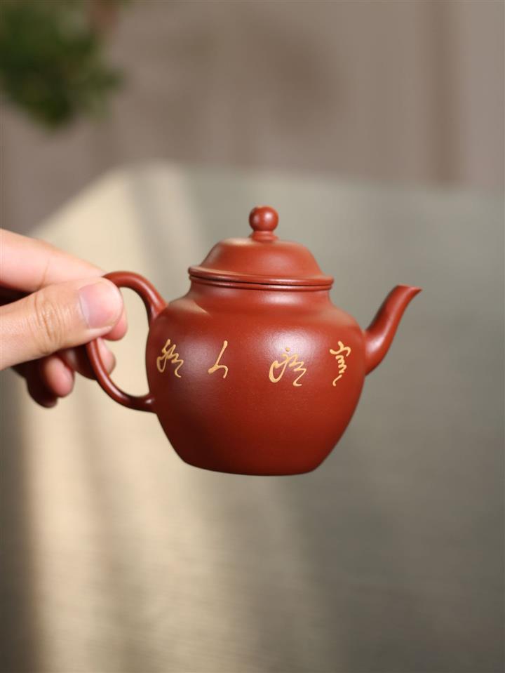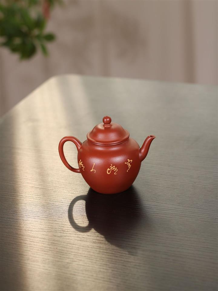 180cc原礦鐵血紅砂刻字寒江泡茶壺POT9481