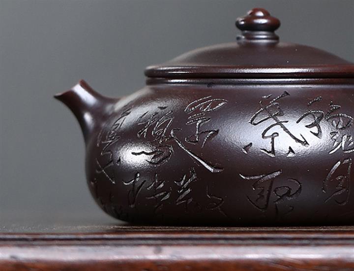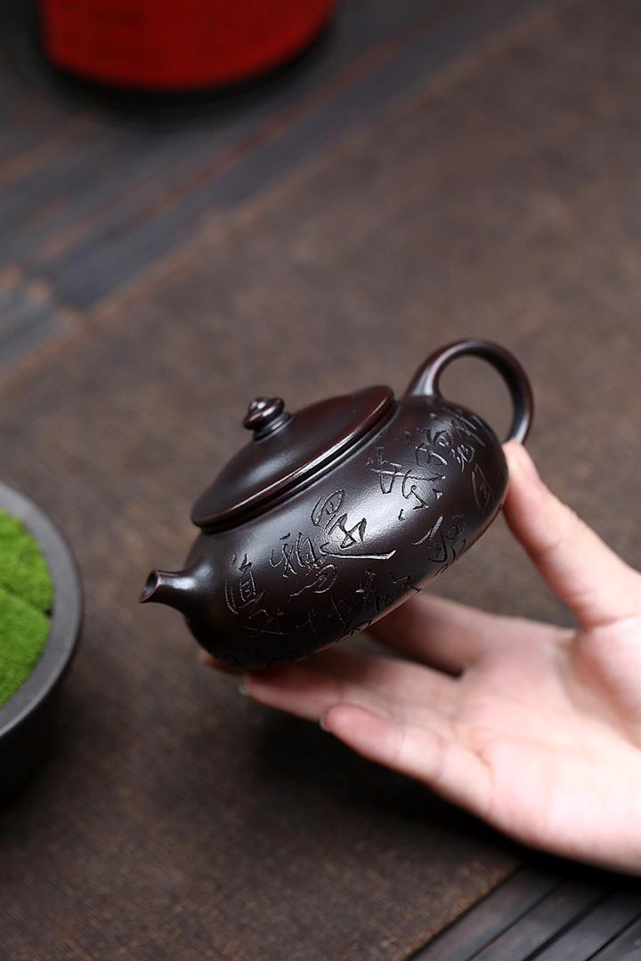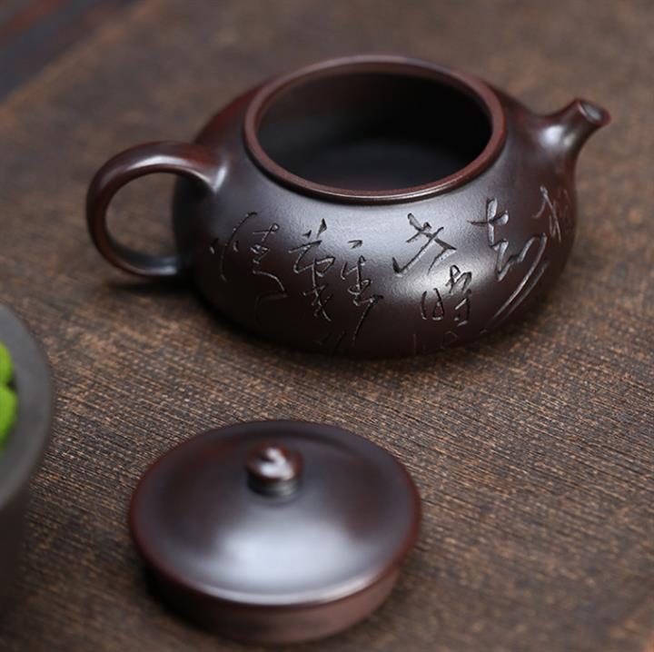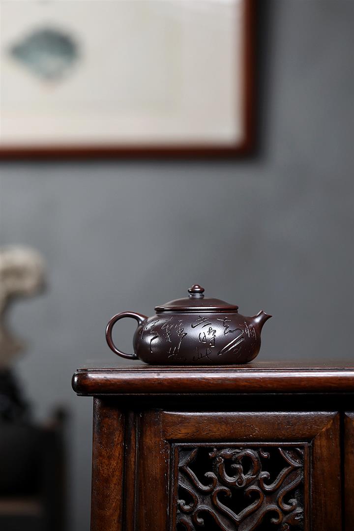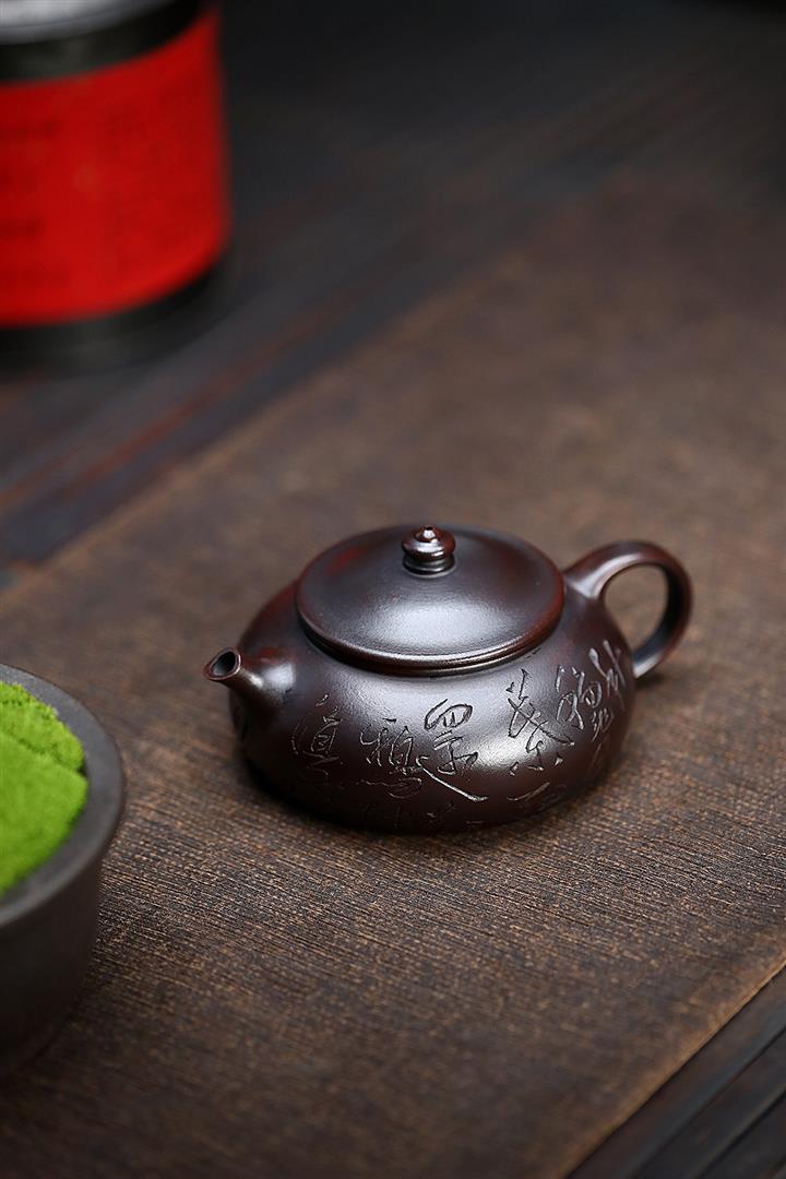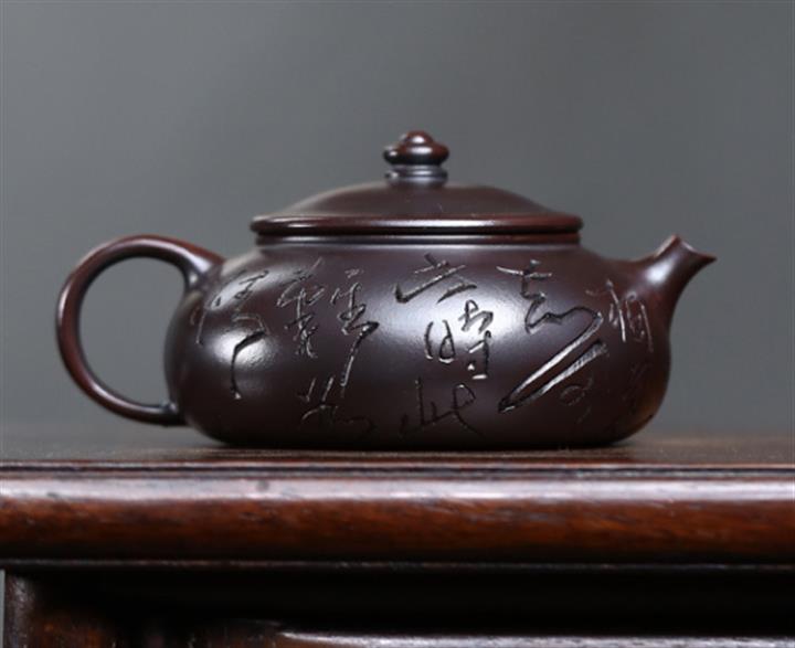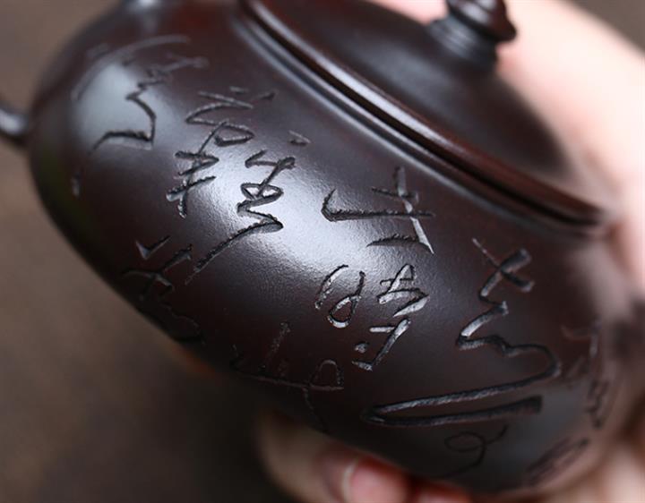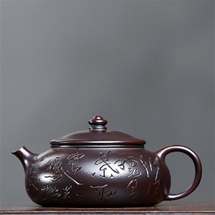180cc原礦鐵血紅砂刻字寒江泡茶壺POT9481