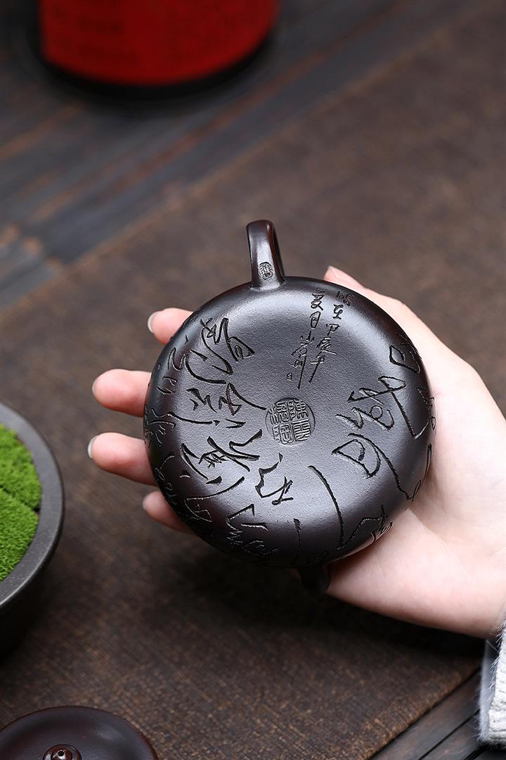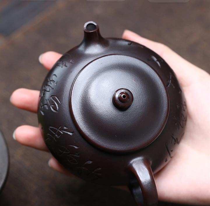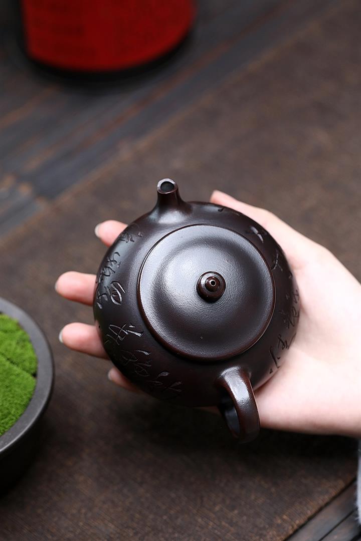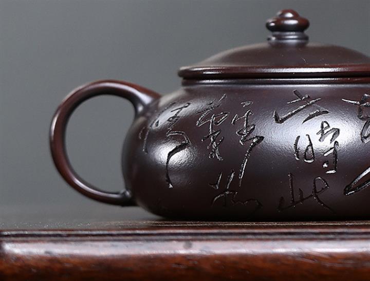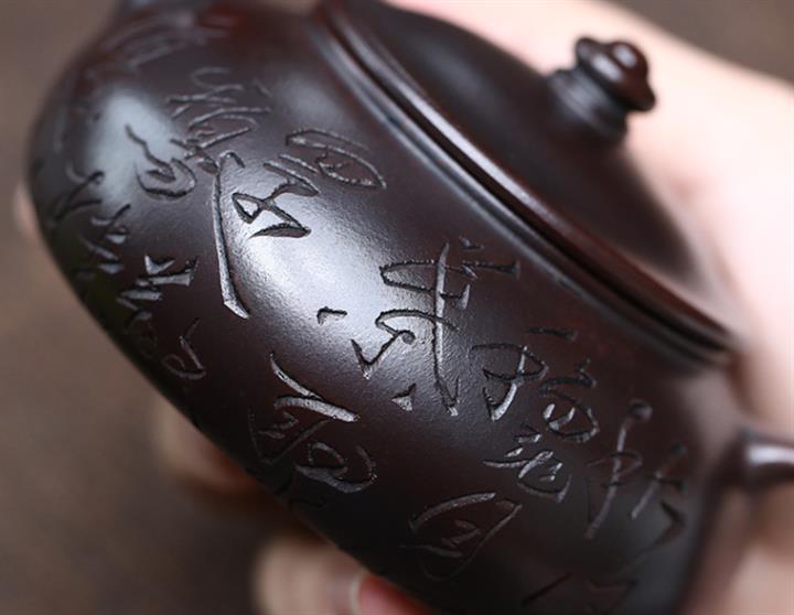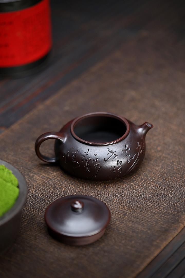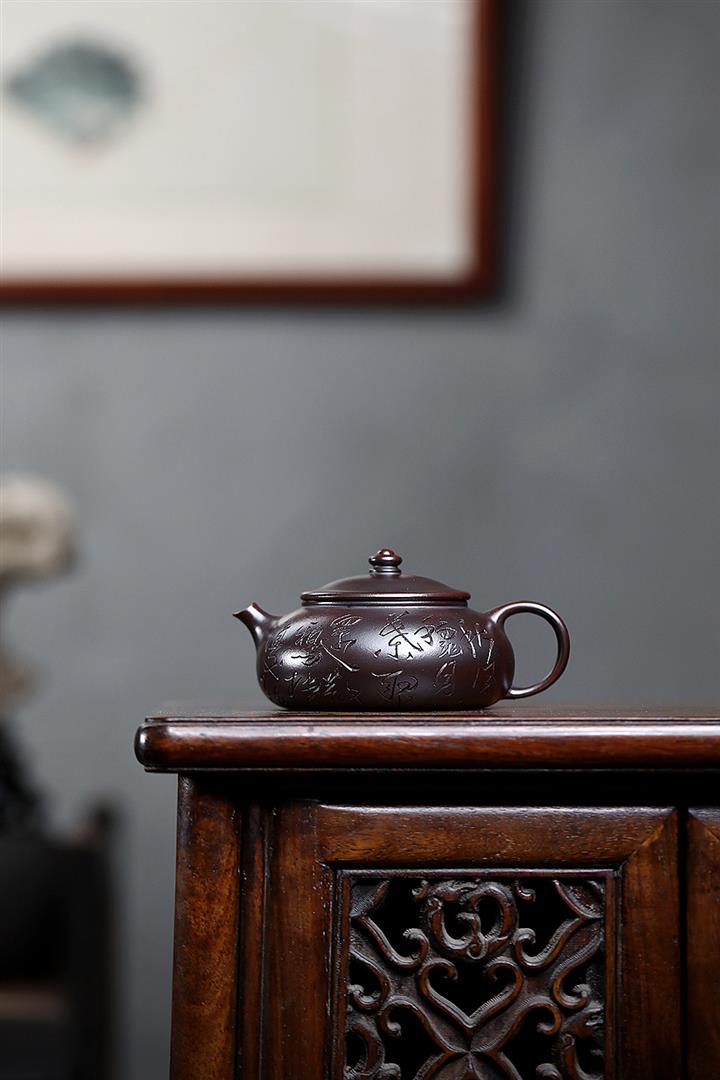 180cc原礦鐵血紅砂刻字寒江泡茶壺POT9481