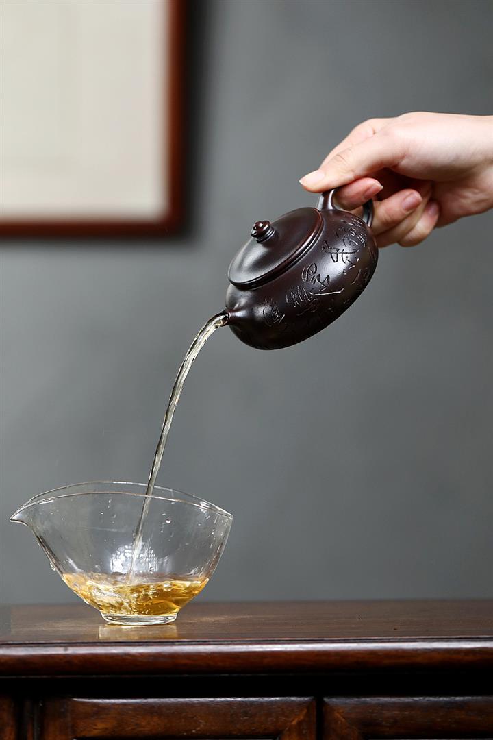 【泥料特點】砂土氣重,似淳實農民,日久使用,漸露鋒芒,養成變化,溫潤莊重。紫砂是壹種雙重氣孔結構的多孔性材質,氣孔微細,密度高。用紫砂壺沏茶,不失原味,且香不渙散,得茶之真香真味。紫砂使用越久,壺身色澤越發光亮照人,氣韻溫雅。紫砂壺長久使用器身會因撫摸擦拭,變得越發溫潤光澤。