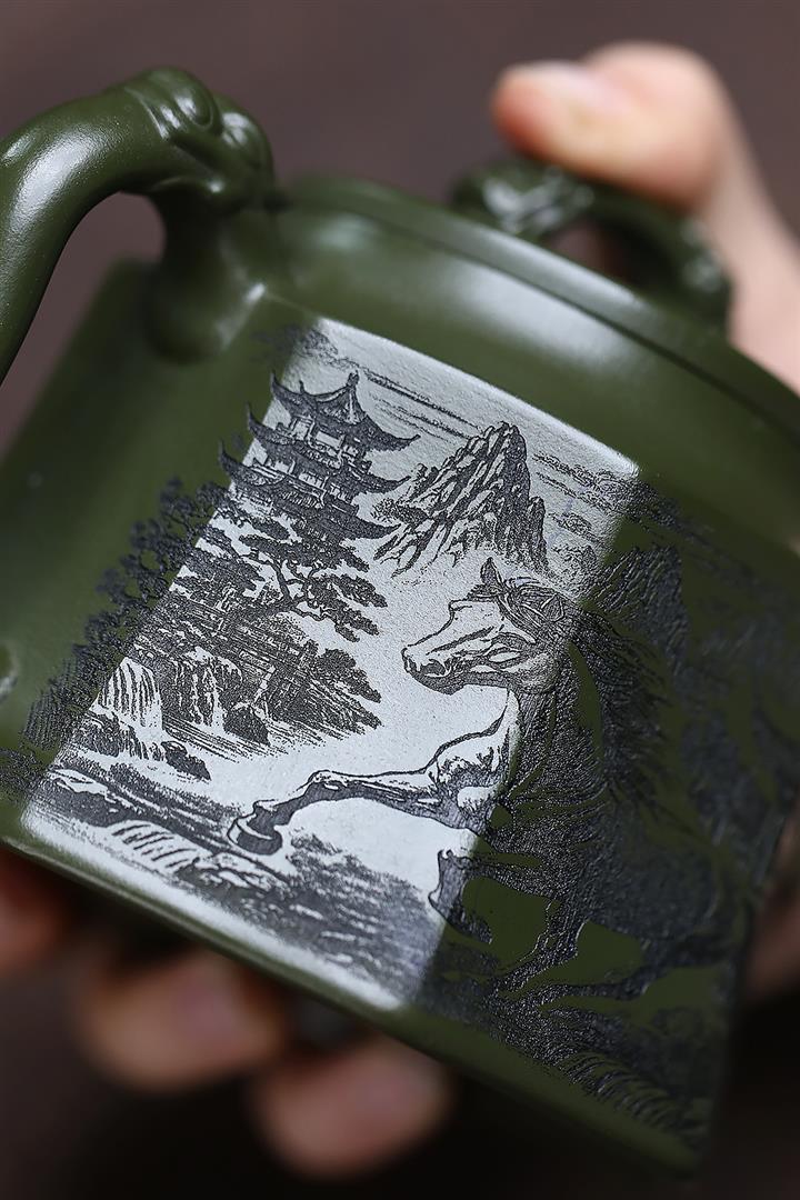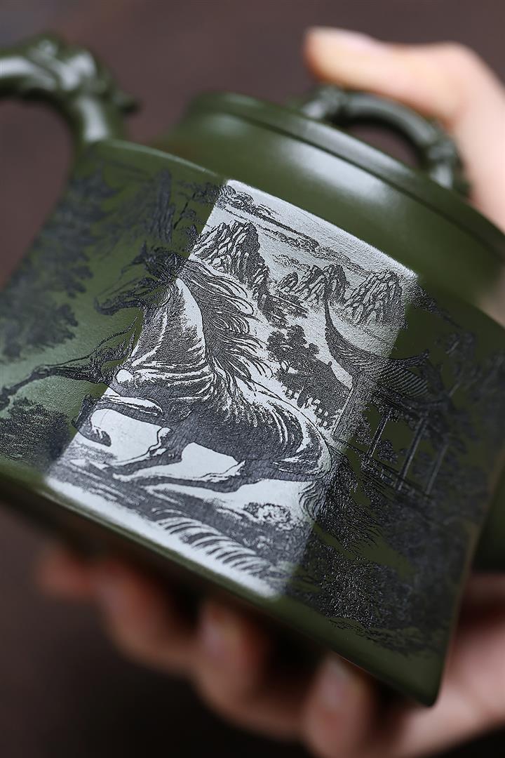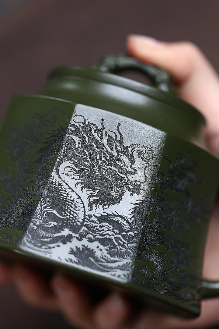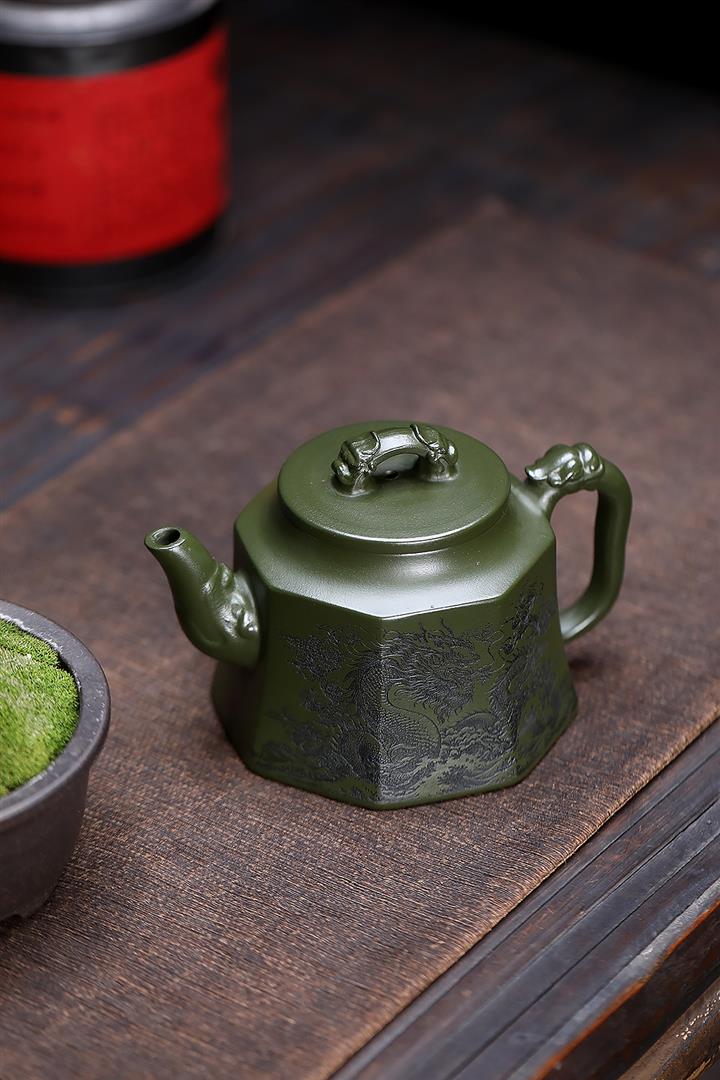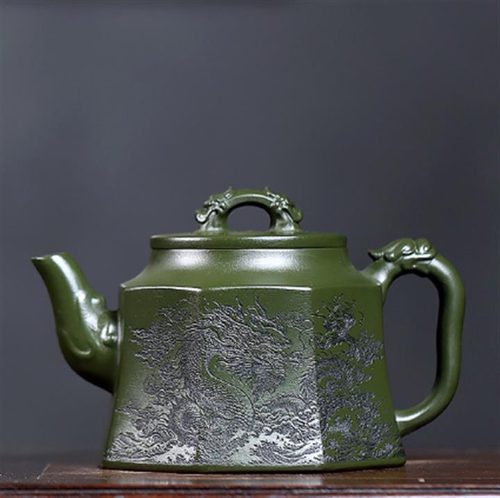 350cc原礦民國綠泥八方龍權泡茶壺POT9485