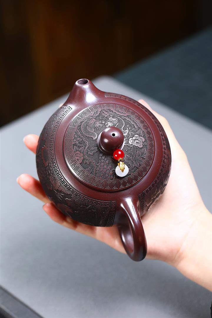550cc原礦鐵血紅砂花好月圓漢瓦泡茶壺POT9496
