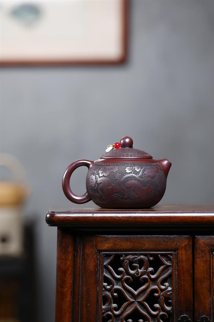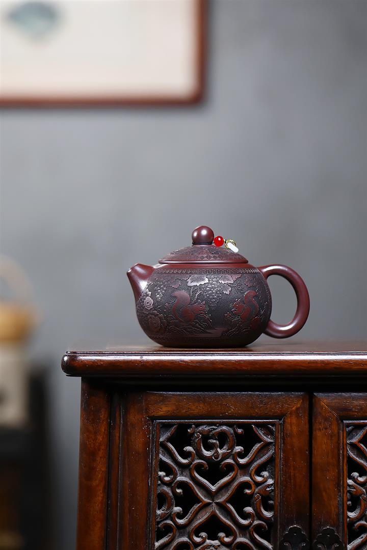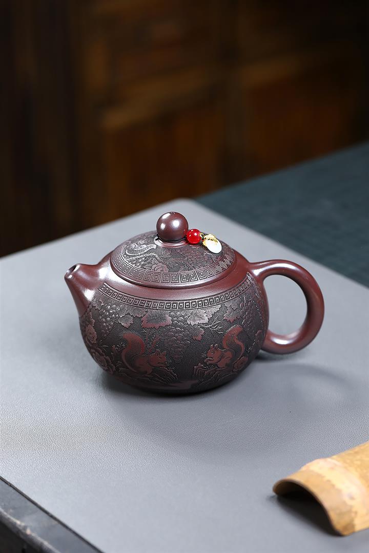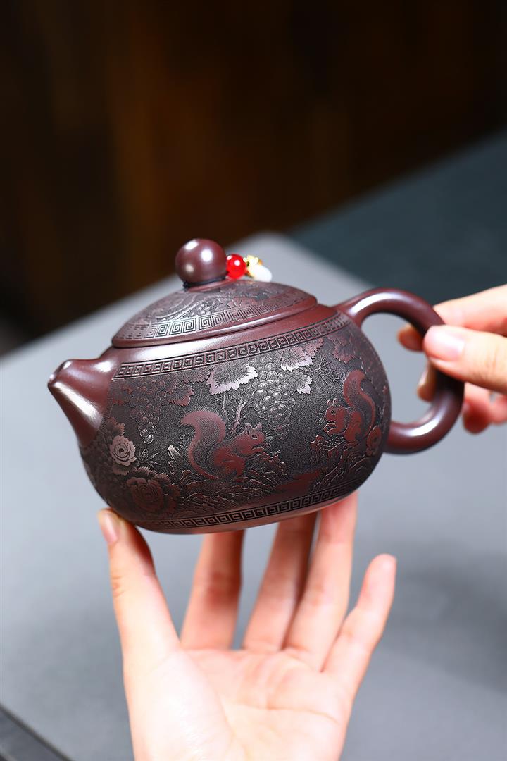380cc原礦石紅松鼠葡萄西施泡茶壺POT9494