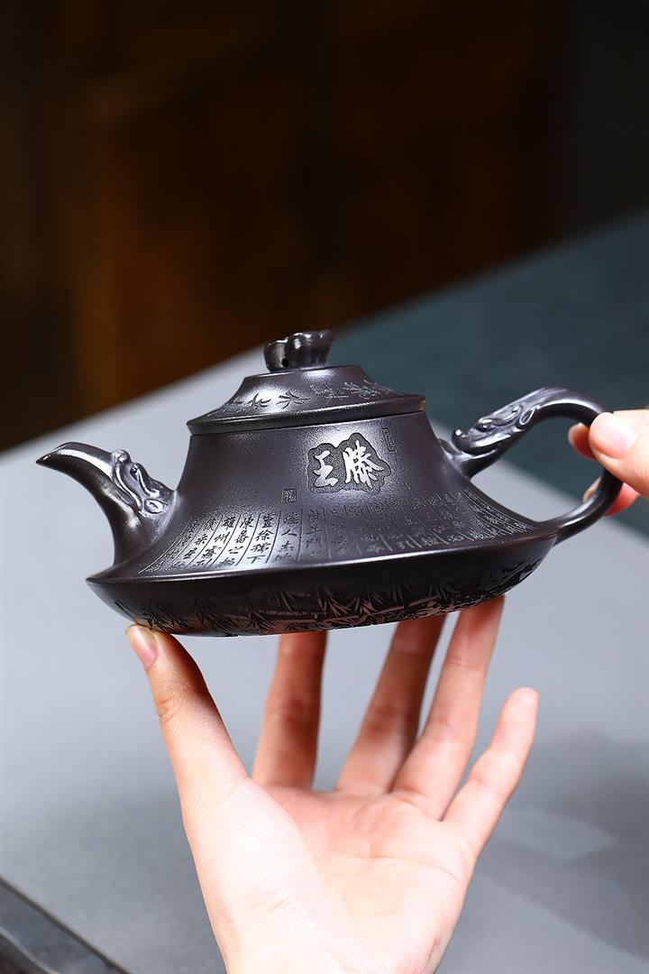 350cc龍窯高溫柴燒龍骨金砂提梁泡茶壺POT9503