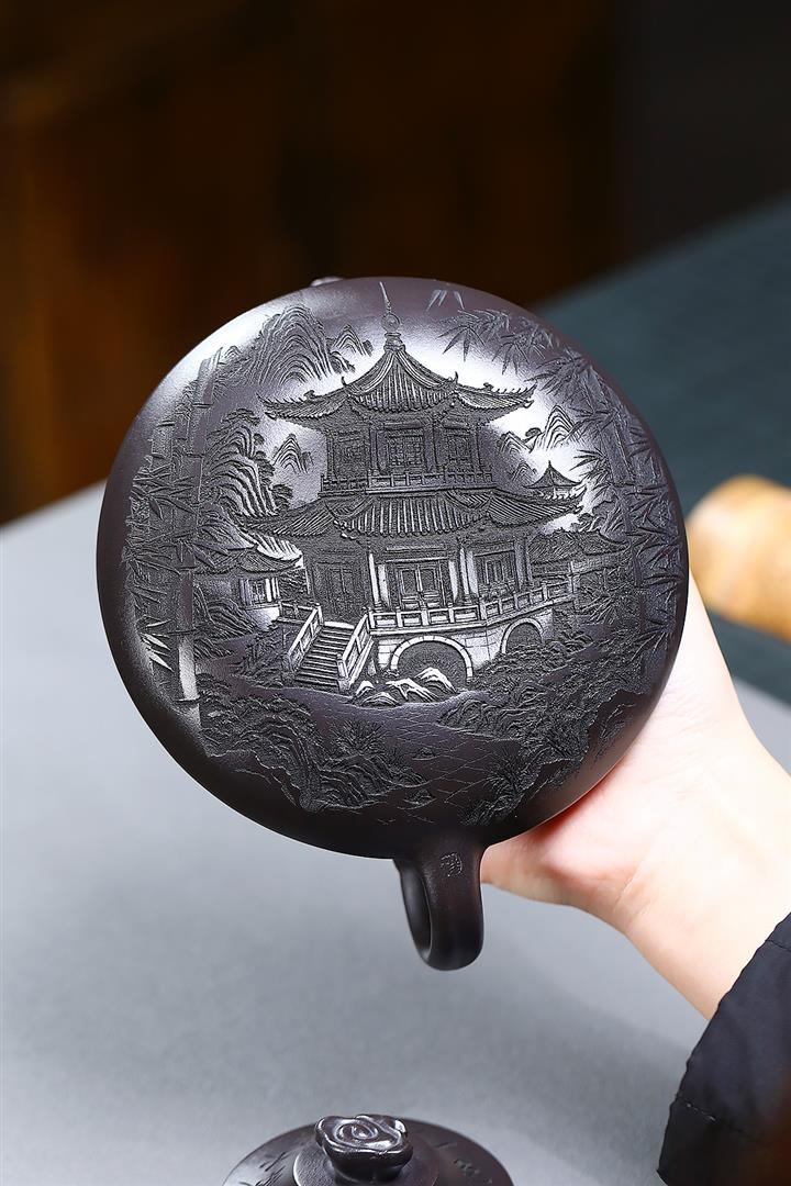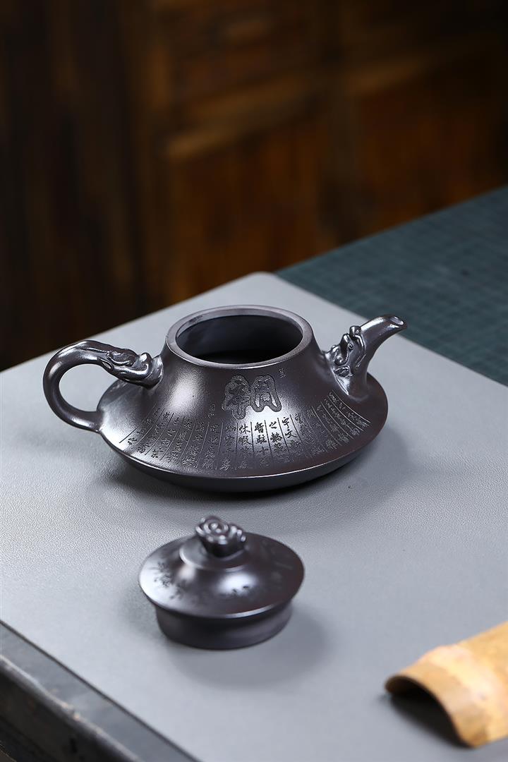 150cc原礦沈香泥柴燒刻字漢瓦泡茶壺POT9502