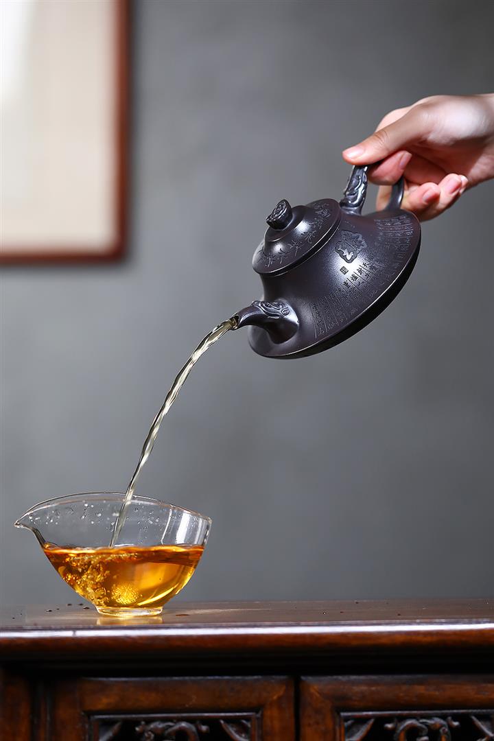 【作品介紹】此款壺形線條流暢,壺把,壺嘴,壺身壹氣呵成栩栩如生,是收藏把玩的好壺,泥料色澤古樸典雅,日久使用,漸露鋒芒,養成變化快,溫潤莊重,用其泡茶,使用的年代久,壺身就溫潤,泡出來的茶湯也就醇郁芳馨。