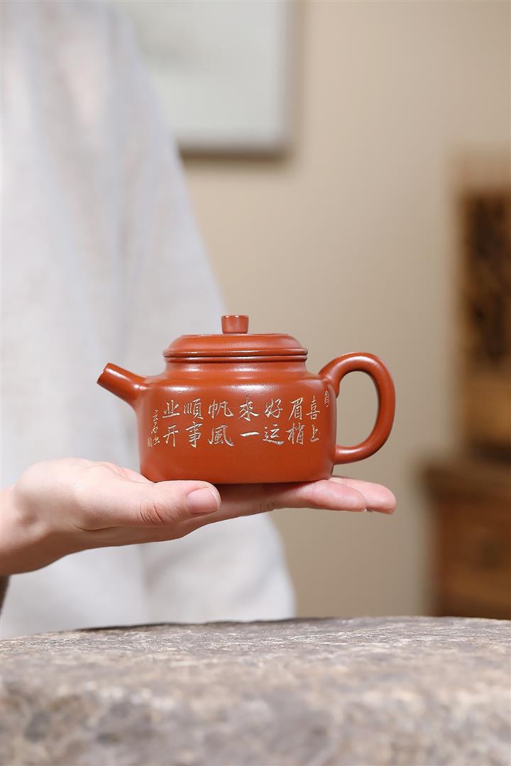 【作品介紹】此款壺形線條流暢,壺把,壺嘴,壺身壹氣呵成栩栩如生,是收藏把玩的好壺,泥料色澤古樸典雅,日久使用,漸露鋒芒,養成變化快,溫潤莊重,用其泡茶,使用的年代久,壺身就溫潤,泡出來的茶湯也就醇郁芳馨。