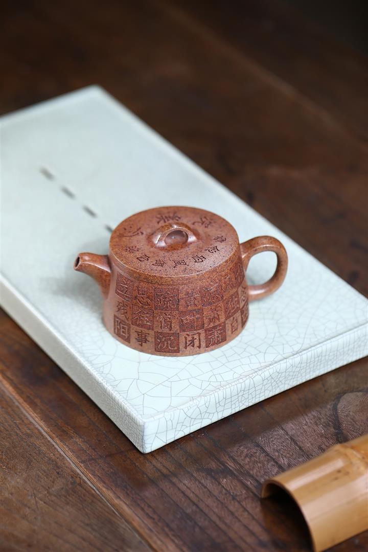 150cc原礦沈香泥柴燒刻字漢瓦泡茶壺POT9502