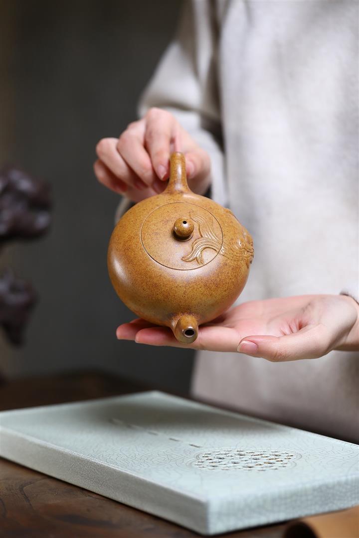 【作品介紹】此款壺形線條流暢,壺把,壺嘴,壺身壹氣呵成栩栩如生,是收藏把玩的好壺,泥料色澤古樸典雅,日久使用,漸露鋒芒,養成變化快,溫潤莊重,用其泡茶,使用的年代久,壺身就溫潤,泡出來的茶湯也就醇郁芳馨。
