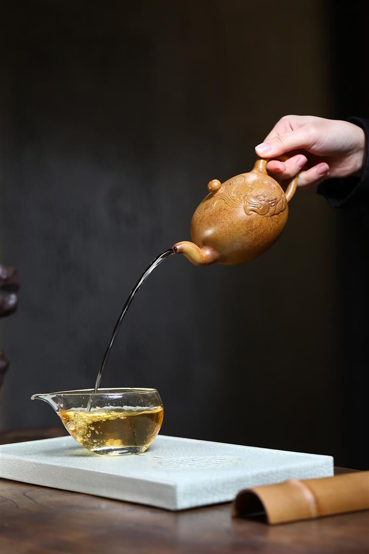【泥料特點】砂土氣重,似淳實農民,日久使用,漸露鋒芒,養成變化,溫潤莊重。紫砂是壹種雙重氣孔結構的多孔性材質,氣孔微細,密度高。用紫砂壺沏茶,不失原味,且香不渙散,得茶之真香真味。紫砂使用越久,壺身色澤越發光亮照人,氣韻溫雅。紫砂壺長久使用器身會因撫摸擦拭,變得越發溫潤光澤。